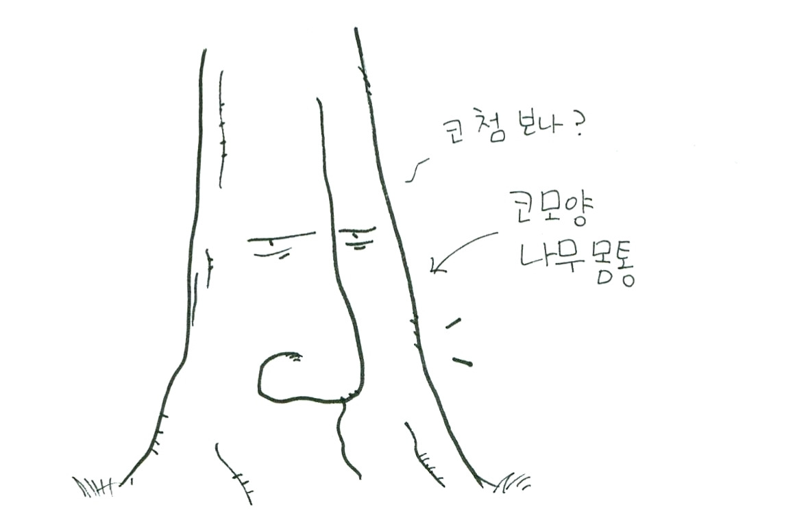 사람 코모양을 닮은 나무에 입맞춤 하기