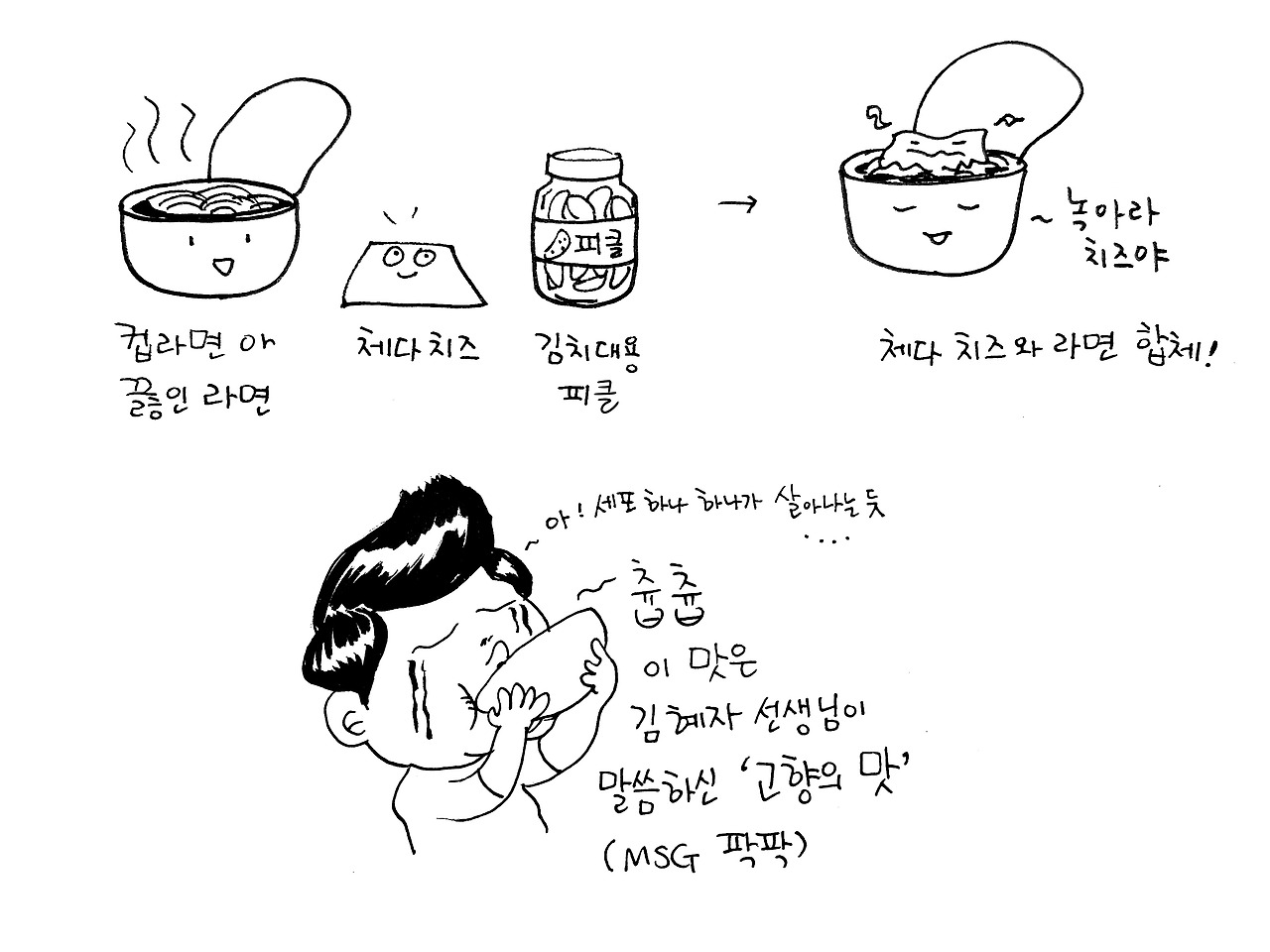 한국 라면 + 체다 치즈 한장 + 김치 대신 피클