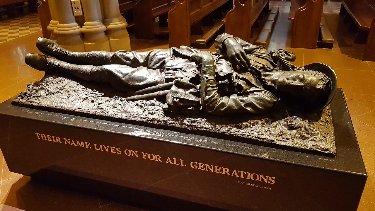 전몰 장병을 기리는 추모 동상이 성당안에 자리하고 있다.