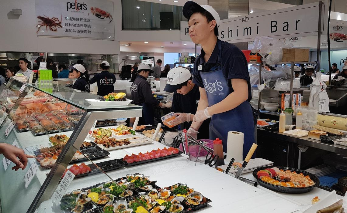 마침 점심시간이라 식당 코너에 가서 먹거리를 골랐다. 시드니 피시 마켓에서는 두 가지 방법으로 시식을 할 수 있었는데, 첫 번째는 싱싱한 해산물을 골라 현장에서 찌거나 튀겨서 먹는 방법 또 하나는 완성된 음식(초밥, 튀김 등)을 구입해서 먹는 방법이었다. 특히 초밥의 경우 다양한 메뉴와 플레이팅으로 손님들의 식욕을 자극했다.