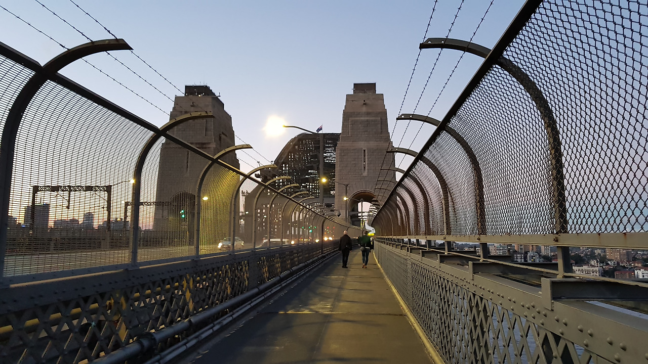 여행 패키지 예약을 마치자 해가 뉘엿뉘엿 지기 시작했다. 그럼에도 Vivid Sydney의 오프닝 공연(오페라 하우스 벽면을 캔버스로 이용한 맵핑 이벤트)을 시작하기까지 한 시간 정도 여유가 있었다. 그래서 16년 전 그랬던 것처럼 하버 브리지를 건너기로 결정했다.