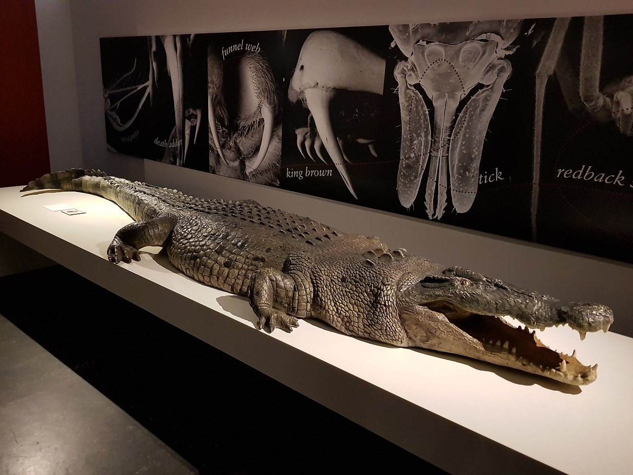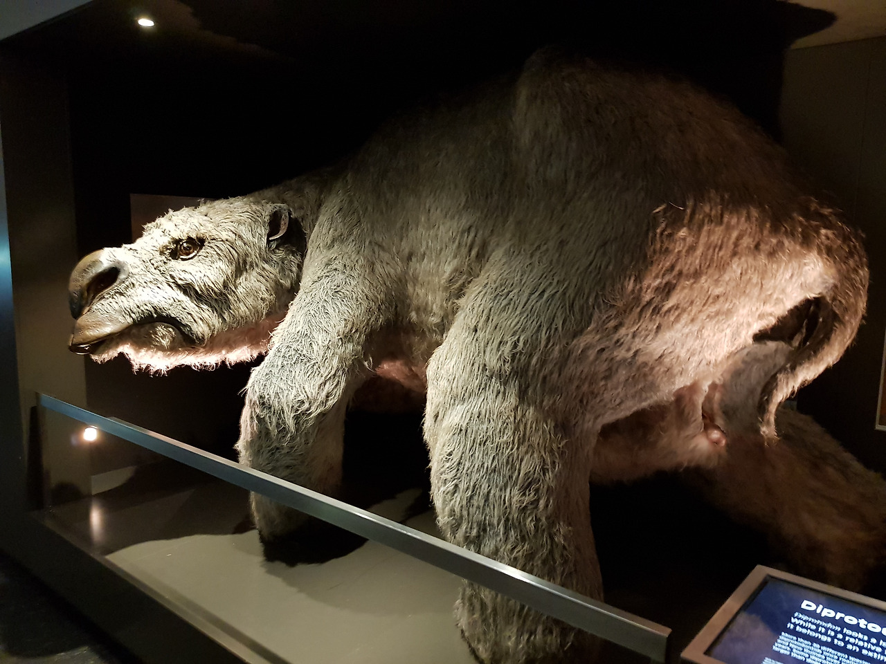 전시실 안쪽으로 들어서자 과거 호주 대륙에 살았던 고생물 표본이 전시되어 있었다. 공룡 화석은 물론 호주에만 서식하는 웜뱃이라는 포유류의 조상뻘 되는 디플로토돈스(Diprotodons)의 표본(현생 웜뱃은 아기 돼지만 한 사이즈지만 웜뱃의 선조는 북극곰보다 컸다.), 대형 바다 악어 박제, 지난 여정에서 마주쳤던 화식조 박제, 엄청난 사이즈의 공룡 화석 등 다양한 전시물이 자리하고 있었다.