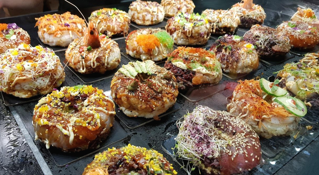 점심으로 먹은 도너츠형 초밥과 석화 세트