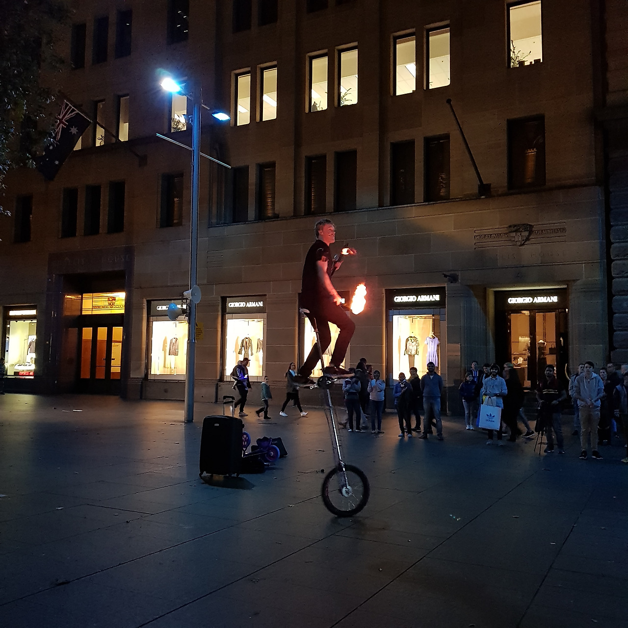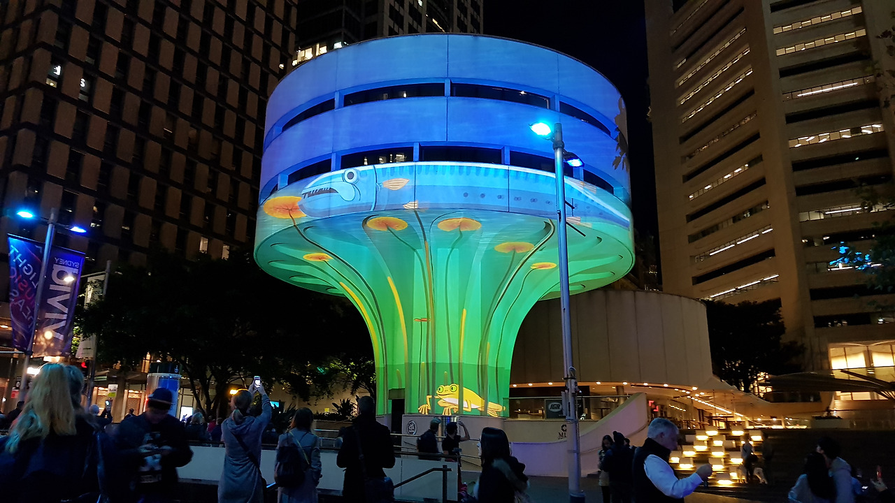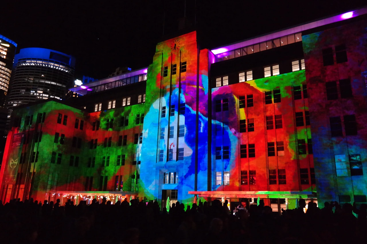 그리고 또 하나의 파사드 쇼가 MCA는 건물(오후 방문했던 미술관)을 캔버스로 활용해 펼쳐지는데, 원색이 주가 되는 콘텐츠는 보는 이들의 탄성을 자아내게 했다. 이밖에도 도시의 주요 건물에 매일 밤 조명과 음악이 입혀져 관광객들에게 새로운 볼거리를 제공하고 있었다. 여기에 더해 도심 여기저기에서 다양한 공연(불쇼, 마술쇼, 댄싱 공연 등)이 진행된다. 한 마디로 비비드 시드니 기간 중에는 도시 전체가 축제의 장이 되는 것이다.