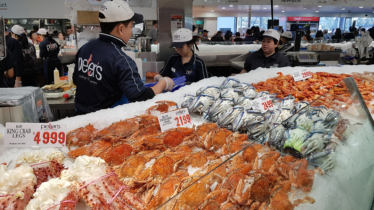 마켓에는 그간 한국 수산시장에서 보지 못했던 초대형 랍스터와 타즈매니안 자이언트 킹 크랩(Tasmanian King Crab) 같이 난생처음 보는 수산물이 넘쳐 났다. 특히 타즈매니안 자이언트 킹 크랩은 최대 46 cm 크기까지 자라고 17.6 kg에 이를 정도로 초대형 사이즈를 자랑하는데, 전 세계 크랩 중 두 번째로 큰 종이라고 한다. 흥미로운 사실은 오른쪽 집게발의 사이즈가 거대해서 보는 것만으로도 압도감을 준다. 우리나라 만화 중 박석환 화백의 '주먹 대장' 주인공과 닮은꼴이다.