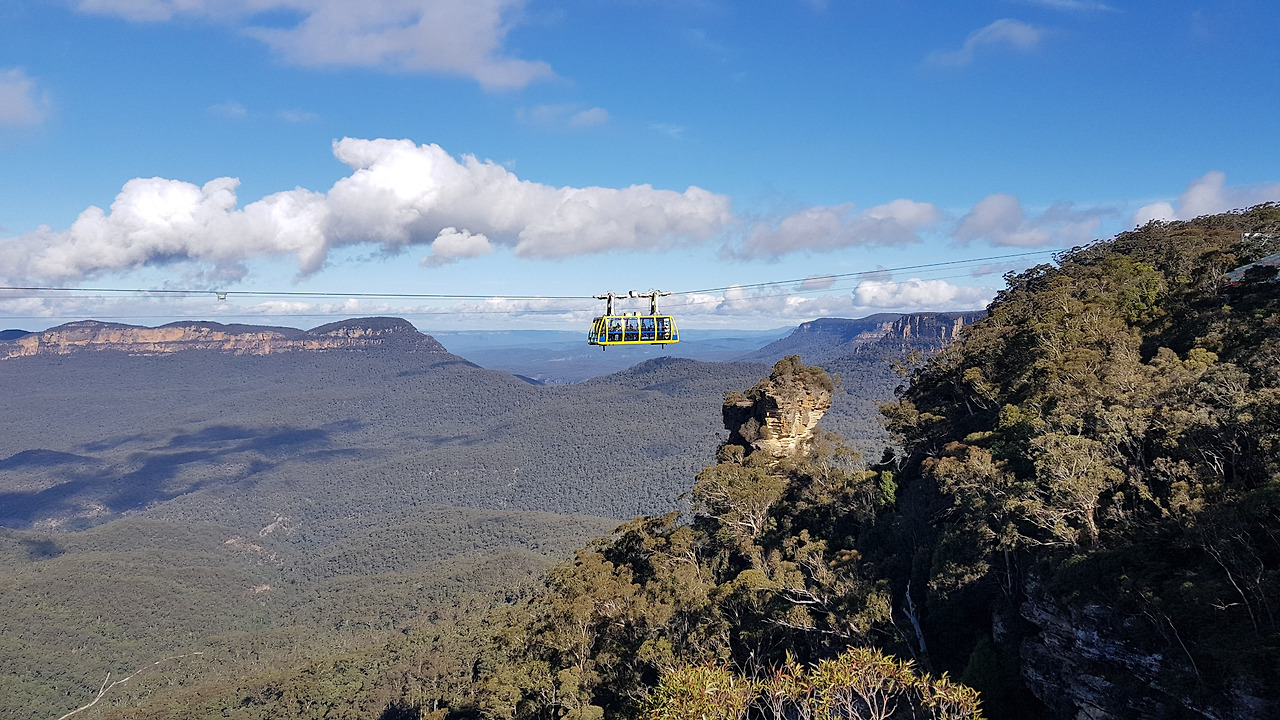 협곡으로부터 270m 높이의 절벽과 절벽 사이를 케이블로 연결하고 그 사이(720m)를 케이블카가 왕복하는 형태다. 케이블카 안에서는 툼바 폭포 (Katoomba Falls), 쓰리 시스터즈 (Three Sisters) 및 자미 슨 밸리 (Jamison Valley)의 수평선을 자유롭게 감상할 수 있다. 여기에 또 하나의 재미 요소가 있으니 바로 투명 유리 바닥을 통해 열대 우림을 관찰할 수 있다는 것이다.