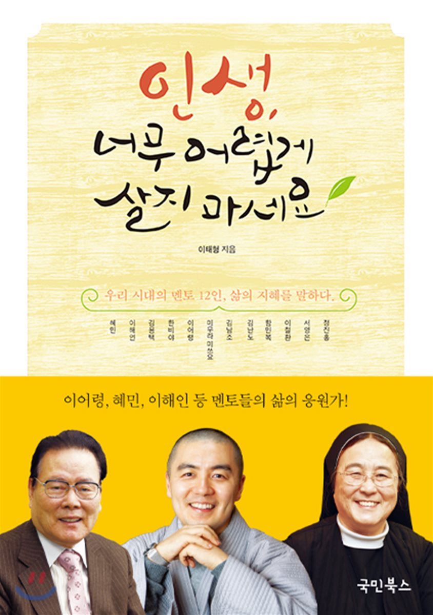 스님을 인터뷰한 저자는 그의 인생관이나 철학에 대한 이야기를 기대했을 텐데 정작 스님은 사람이 중요하지 사상이나 생각의 고결성이 더 중요한 것은 아니라 한다. 이 책의 제목인 "인생 너무 어렵게 살지 말라"고 하는 말은 혜민 스님이 청년들에게 해주고 싶은 조언이다. 그는 30대의 어느 봄날에 갑자기 세 가지를 깨달았다고 한다.
