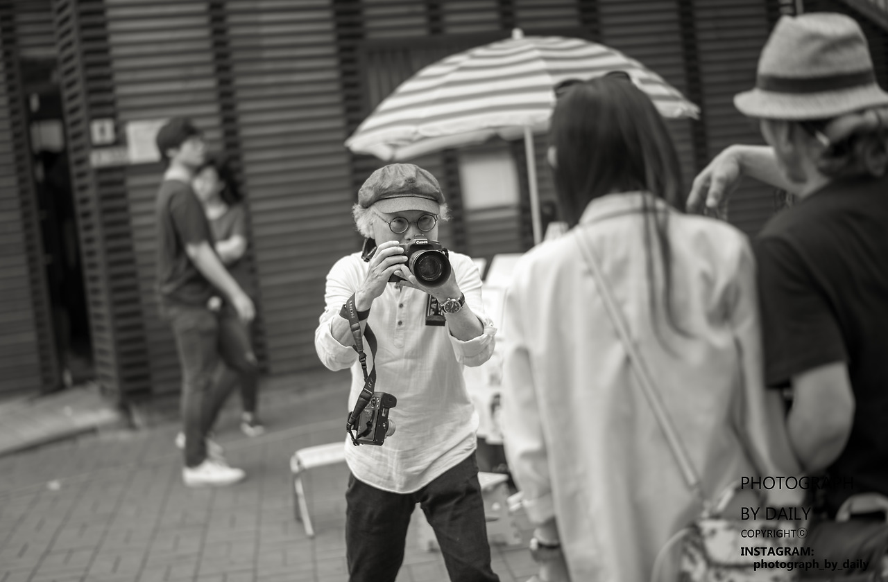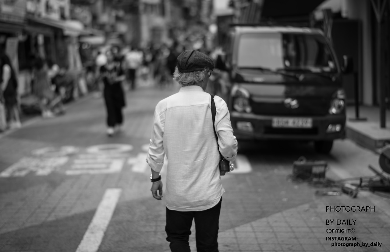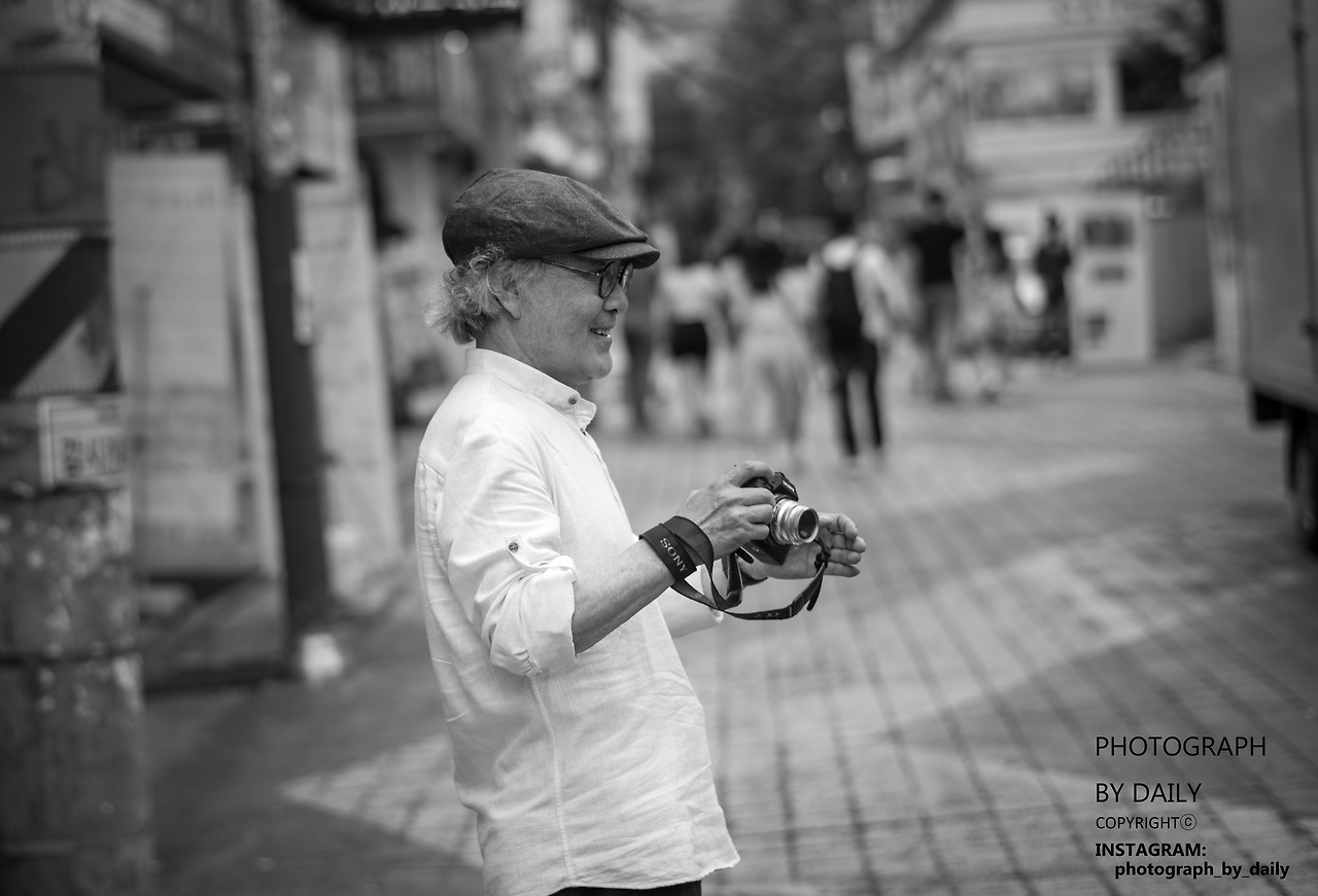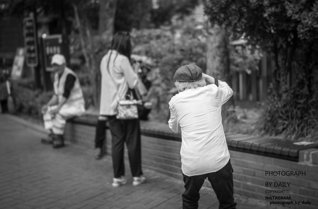 거리의 사진을 찍는 노인입니다.