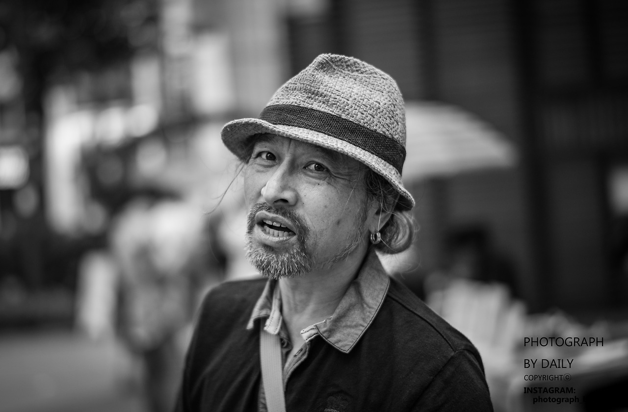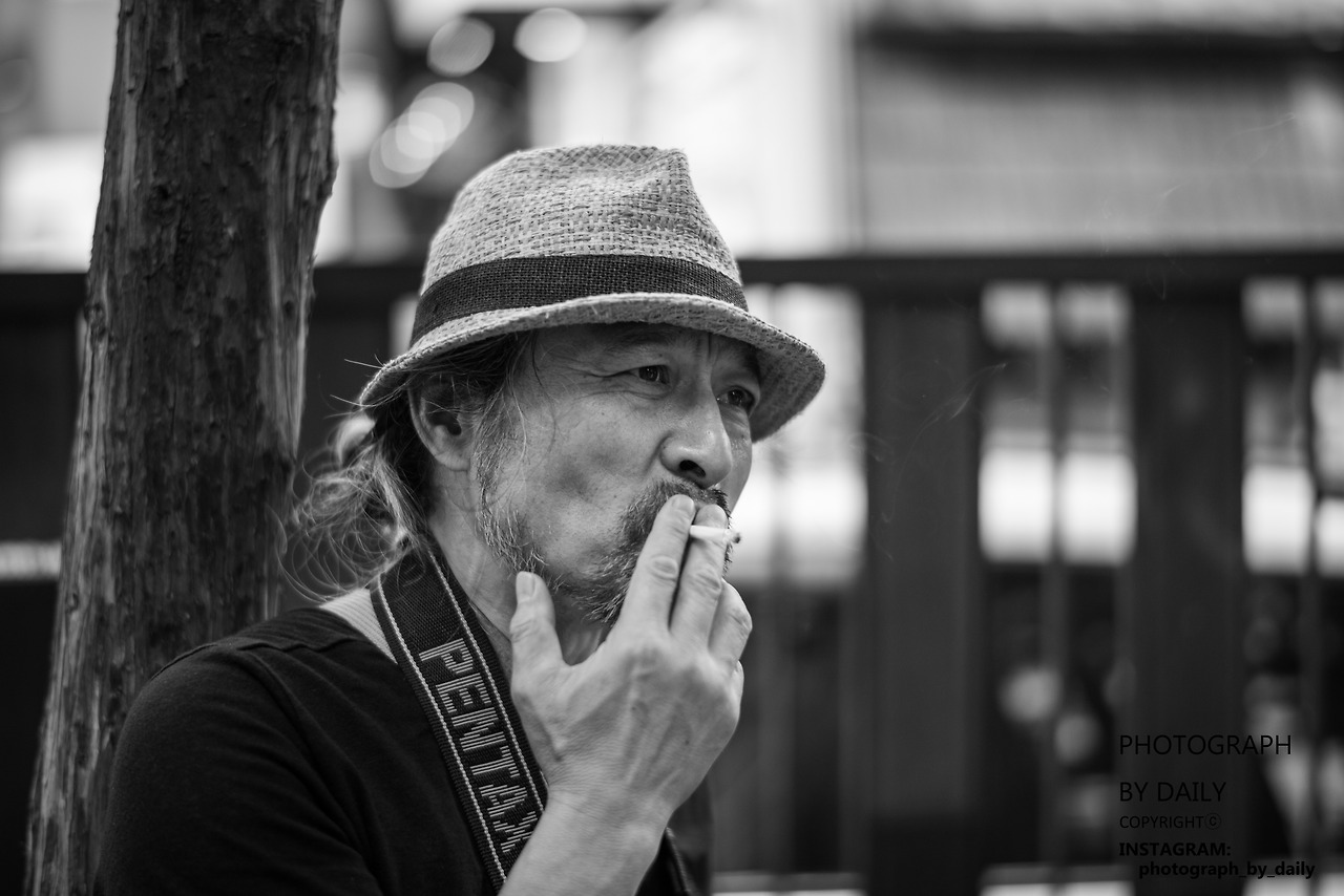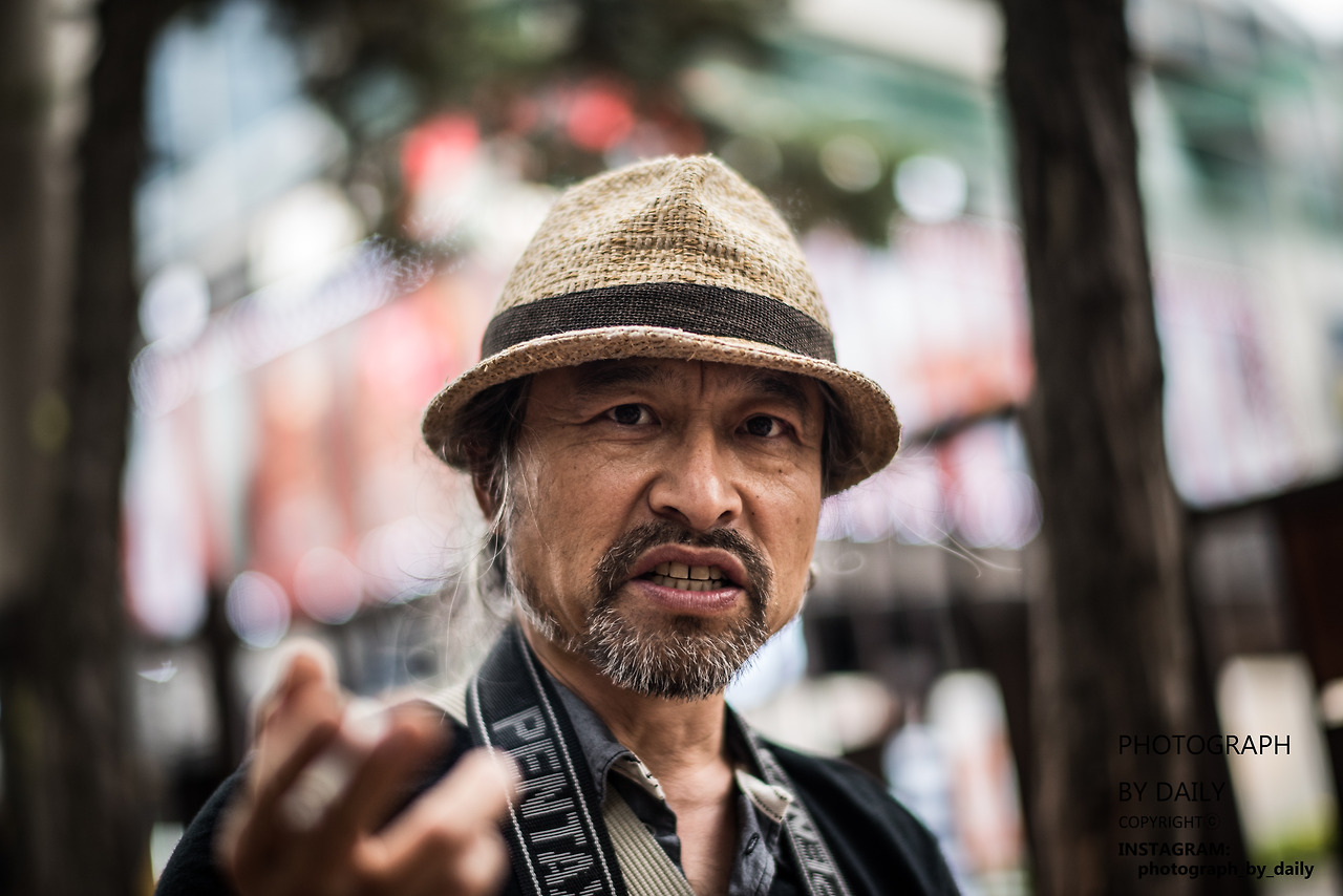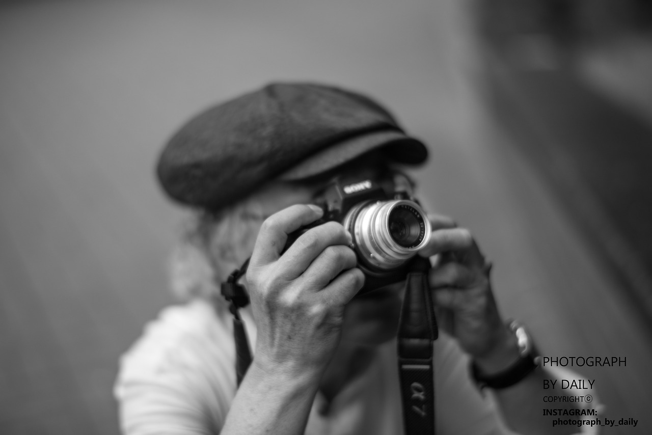 거리의 사진을 찍는 노인입니다.