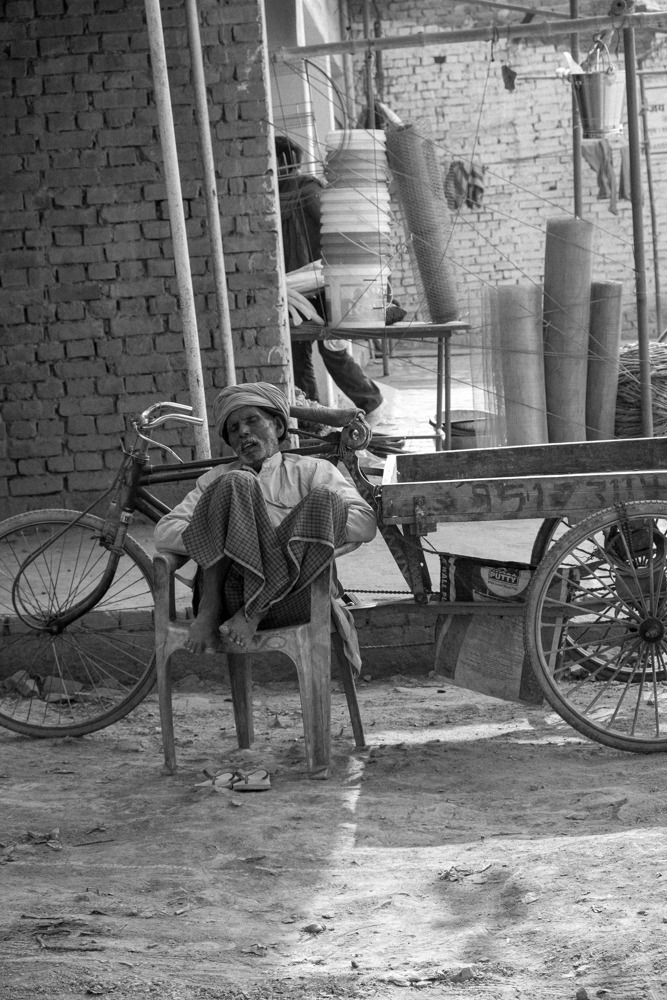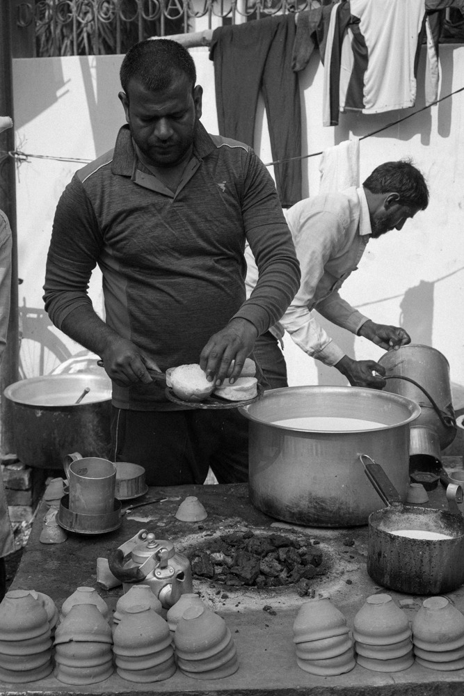 게눈 감추듯 빵과 짜이를 다 먹어 치웠다. 아쉬운 마음에 짜이를 한잔 더 시키고 앉아 있는데, 앞에 앉은 아저씨가 흐뭇하게 웃으며 나를 쳐다봤다. 게걸스럽게 음식을 해치우는 내 모습이 재밌으셨던 모양이다. 멋쩍은 모습으로 아저씨한테 "나마스테"하고 인사를 건네니, 크게 웃으시면서 뭐라 하신다. 역시나 전혀 알아듣지 못했지만, 나쁘지 않은 기분이 들었다. 아저씨와 몸짓 발짓으로 대화를 나누며, 사진을 한 장 찍었다. 그리고 그 사진을 마지막으로 카메라가 픽하고 꺼져버렸다. 실수로 충전하지 않은 배터리를 장전한 것이었다. 가방을 뒤져봐도 여분 배터리는 보이지 않았다. 어젯밤 멀리 가는 것도 아닌데, 호들갑 떨지 말자고 호들갑을 떤 탓이다. 눈앞이 캄캄했다. 영문을 모르는 아저씨는 아직도 환하게 웃으며 나를 바라봤다. 금방 마음이 누그러졌다. 사진이 뭐가 중요하겠는가. 그래도 아저씨의 모습을 카메라에 담아낼 수 있어서 참 다행이었다.