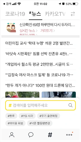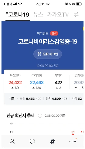 <첫 번째 메뉴 "#코로나19" 선택하기>