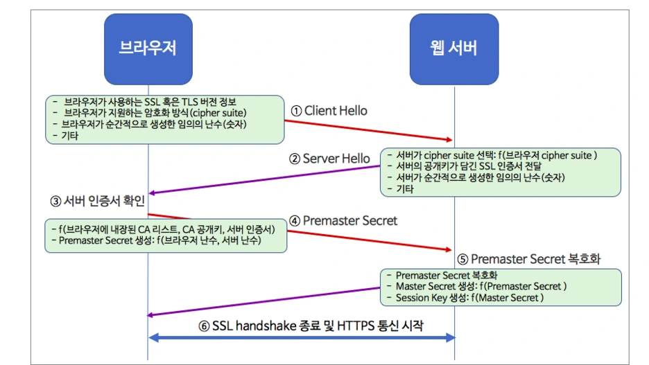 다만, Googling 해보시면 SSL 핸드 셰이크 과정에 대한 내용이 글마다 조금씩 다릅니다. 구현체마다 다양한 옵션을 가지고 있어서 그런 것인데, 원리는 같은 것이니 크게 신경 쓰지 않으셔도 됩니다.