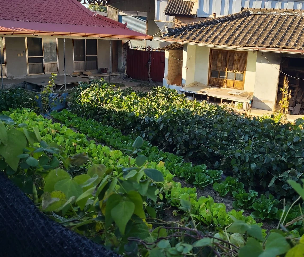 처음에 이 집을 2020년 5월에 만났습니다. 마당은 푸릇푸릇 싱그러운 채소들이 자리를 차지하고 있었고 담장이 없어 까만 비닐 그늘막으로 마당 경계를 표시하였고 빨간 장미덩굴들이 절 반겨주었습니다.