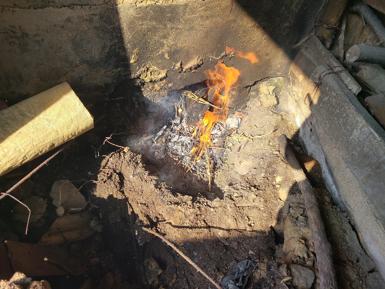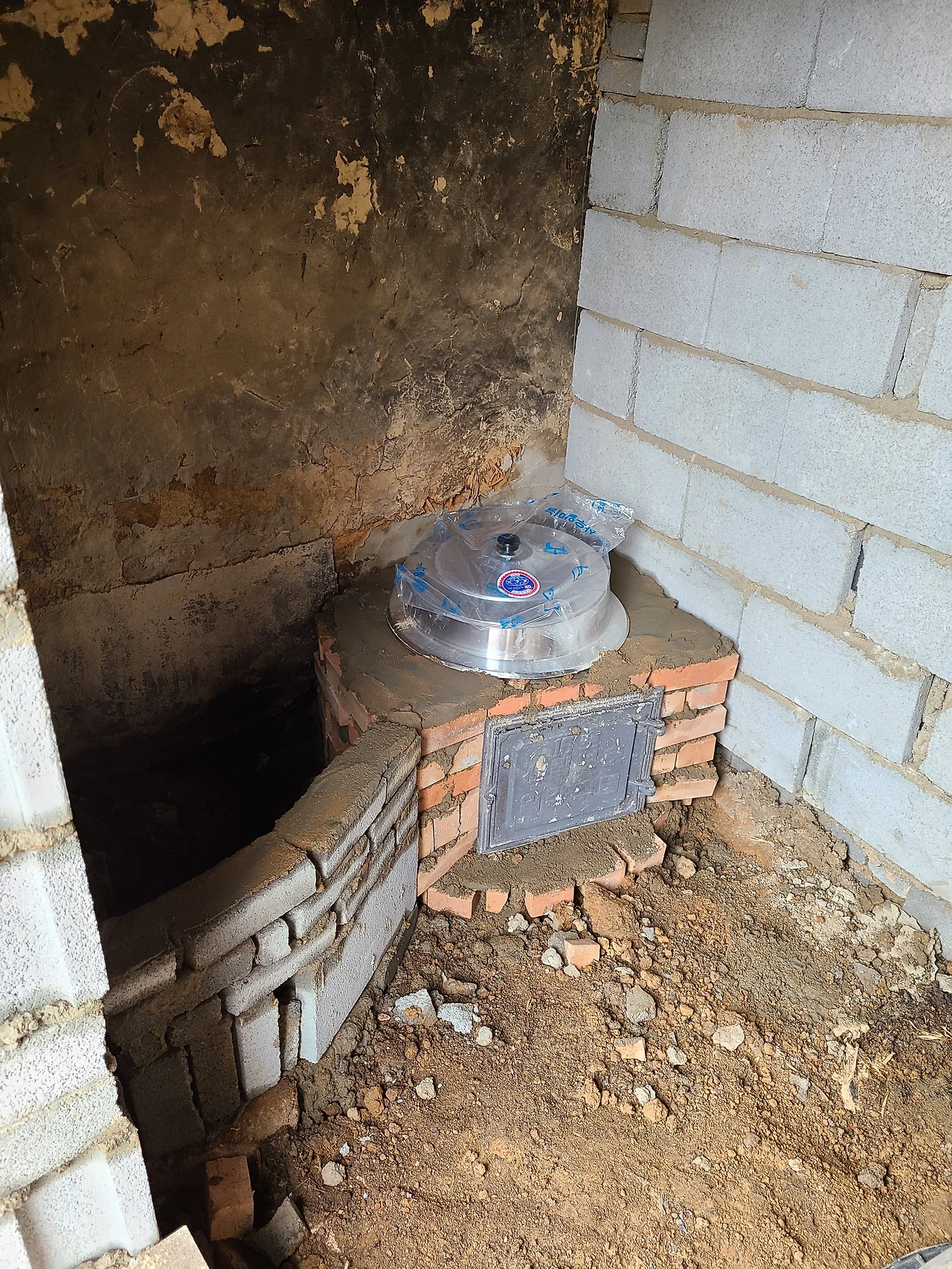 아궁이 구멍이 살아있어서 살살 흙 퍼내고 입구 살려주고 벽돌 쌓아서 아궁이 형태로 만들어주었어요.