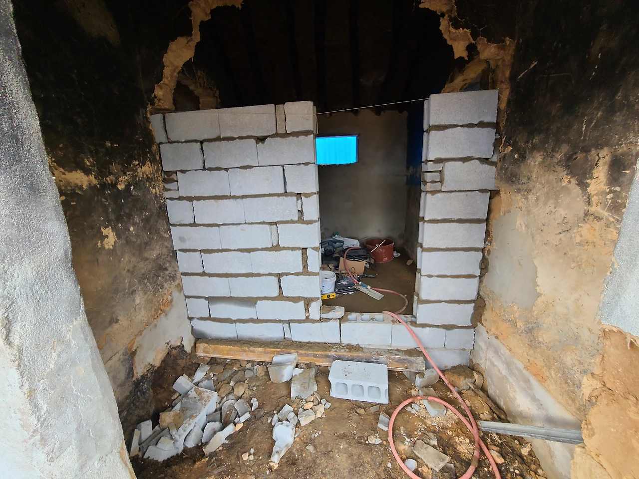 안전모와 안전 안경 마스크 끼고 장기간 철거를 진행했습니다. 먼지가 너무 많이 나더라고요. 그리고 창문이 없어서 구들방. 소살던 공간. 방 1칸 황토벽돌 모양 그대로 파내서 쳐냈어요. 괜히 잘못 건드리면 황토벽돌이 바스러질 것 같아서 생긴 그대로 하나씩 빼내자마자 나무로 틀을 끼웠어요.