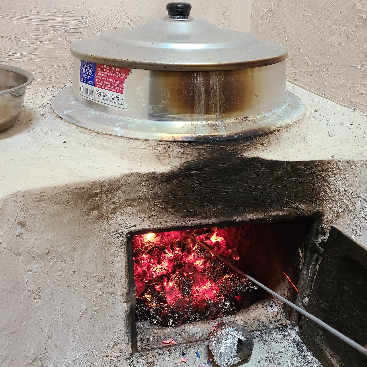 사진에는 없지만 이때 별채 뒤에 굴뚝도 새로 달아주고 전기코드 꼽으면 연기 배출되게 도와주는 모뎀도 설치했어요.