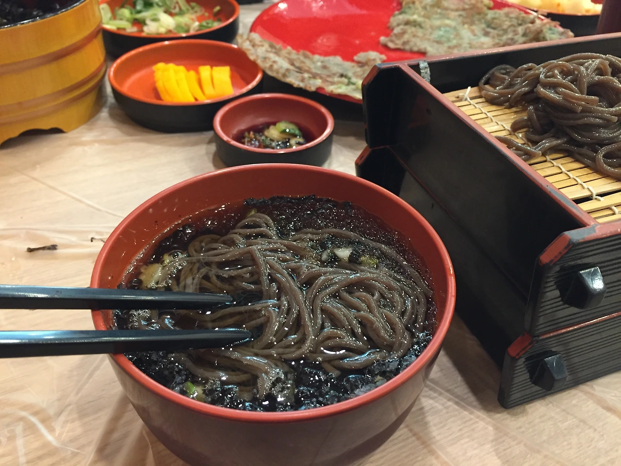 30년 전통의 군산 서울소바에 데려갔다. 군산에 있는데 왜 이름이 서울소바인지는 어렸을 때도 그렇고 지금도 별로 궁금하진 않다. 간 무와 김, 육수와 다진 파가 따로 나오는데 입맛에 따라 알아서 섞어서 먹는 방식이다. 달큼한 맛이 나는 육수가 매력적이며, 어렸을 때 먹었던 맛이 지금도 지켜지고 있다. 특이하게 사리를 선추가(1000원), 후추가(3000원)로 나누어 팔고 있는데 삶는 시간 조절을 위해 행하는 방식이란다. 3인분에 선추가 하나로 했는데 꽤 배부르게 먹었다. 양이 많다기보단 우리가 양이 적어서겠지.