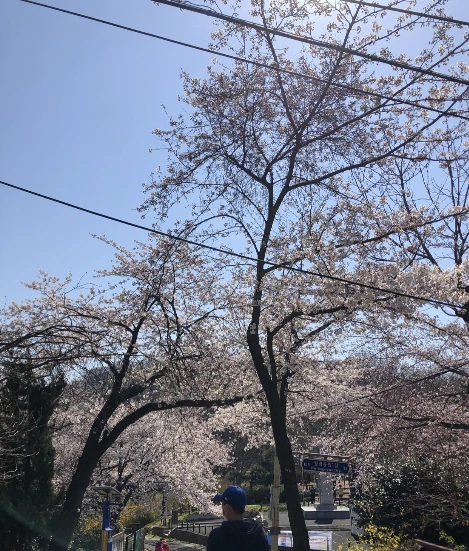 한일옥에서 나오면서 친구들이 멀리 보이는 큰 흰 탑(수시탑)이 무엇인지 물었고, 말이 나온 김에 월명공원을 산책하기로 했다. 초중고 내내 소풍장소로 은파유원지, 금강하구뚝과 함께 고정이었던 곳이다. 예정에 없었던 하이킹이었지만 이때 군산은 그야말로 온 지역이 분홍색으로 물들었던 벚꽃 개화시기, 오전 내내 월명공원을 돌아다녔다.