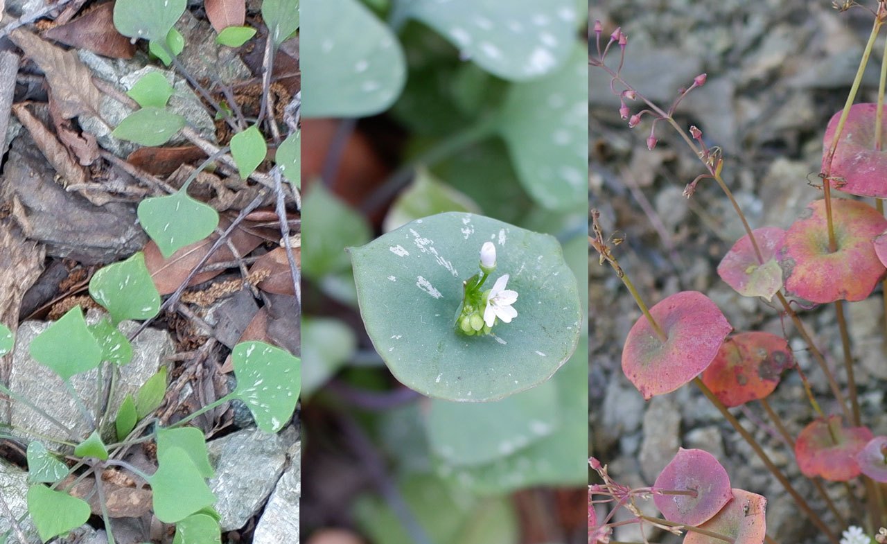안개꽃처럼 작은 하얀 꽃이다. 그런데 신기하게도 줄기 위에 피어 있지 않고 500원 동전 정도 크기의 둥근 잎 한 복판에 봉긋하게 하얀 꽃만 솟아 나와 붙어 있는 것이다. 이렇게 피어나는 꽃은 생전 처음이었다. 마치 귀걸이 장식이 둥그런 잎 위에 붙어 있는 듯한 모습이다. 첫눈에 반해 버렸다. 한참 동안 그 꽃을 보고 있노라니 그 주위 바닥에 온통 이 풀인 듯 꽃인 듯싶은 애들이 잔뜩 자라고 있었다. 도대체 무슨 꽃일까? 왜 이렇게 피는 거지? 궁금증을 가지고 집에 도착하자마자 인터넷 서치를 시작했다.