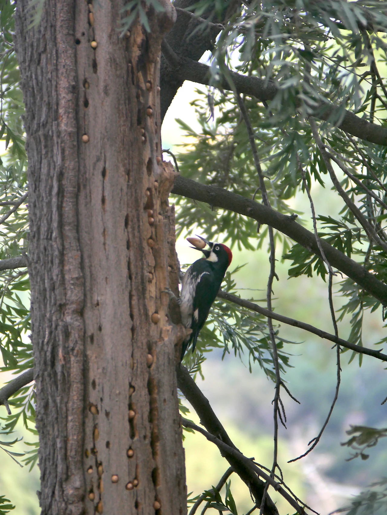 이 딱따구리들은 죽은 나무만 보이면 모든 것이 자기네 식량저장창고로 보이는 모양이다.