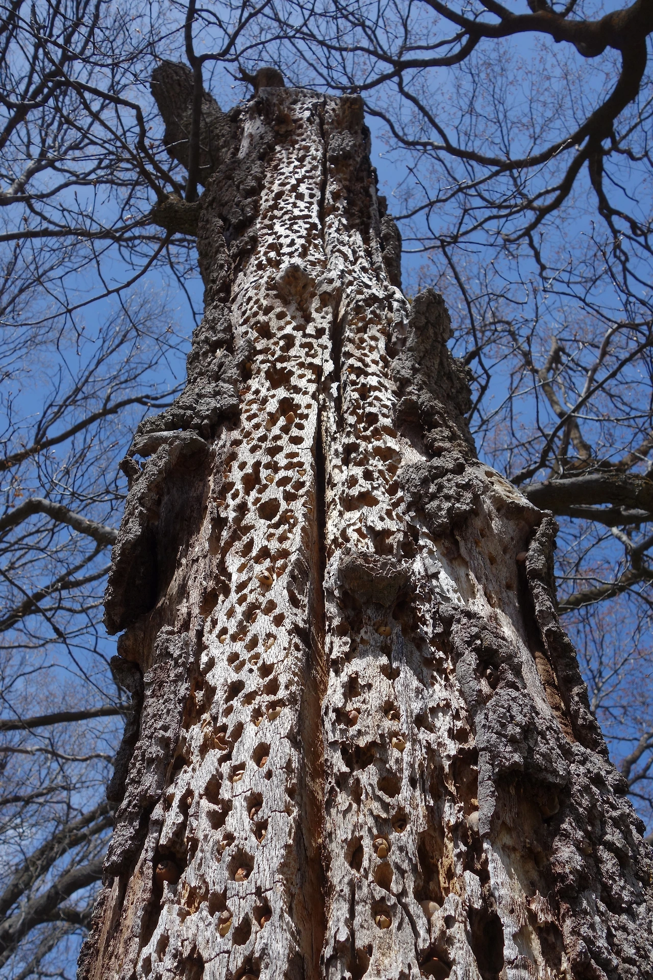 그리고 집에 돌아와 인터넷 서치를 해보니 어떤 종류의 딱따구리들은 죽은 나무에 구멍을 뚫고 벌레나 도토리를 저장해 두었다가 필요할 때 먹는다고 한다 그야말로 사람들이 은행을 이용하는 것과 같은 것이었다.