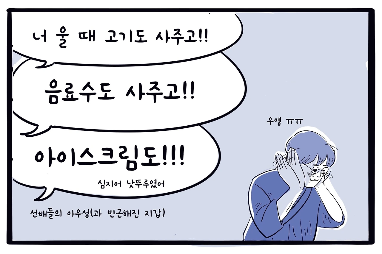 영화 비포 미드나잇에서 “난 널 패키지로 수용했어. 싸이코이자 똑순이!”라고 외친 남자 주인공 제시가 생각난다. 꾸준하긴 했으되 집중력과 흡수력, 사회성이 낮았던 나를 패키지로 받아준 애인. 음료수 한 잔 할 시간을 내어 심란한 마음을 들어준 선배들. 지금의 내 모습은 혈관 어딘가에 그들이 남긴 고기와 아이스크림, 음료수의 흔적인지도 모른다.