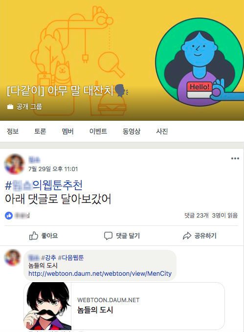 친구들이 개별로 수행하는 프로젝트마다 공개 그룹을 만들고, 그 그룹에 구성원을 초대하는 방식으로 모든 프로젝트의 내용을 공유한다. 나의 경우는 만화 그리기, 글쓰기, 이직준비 등 다양한 그룹을 만들었다.