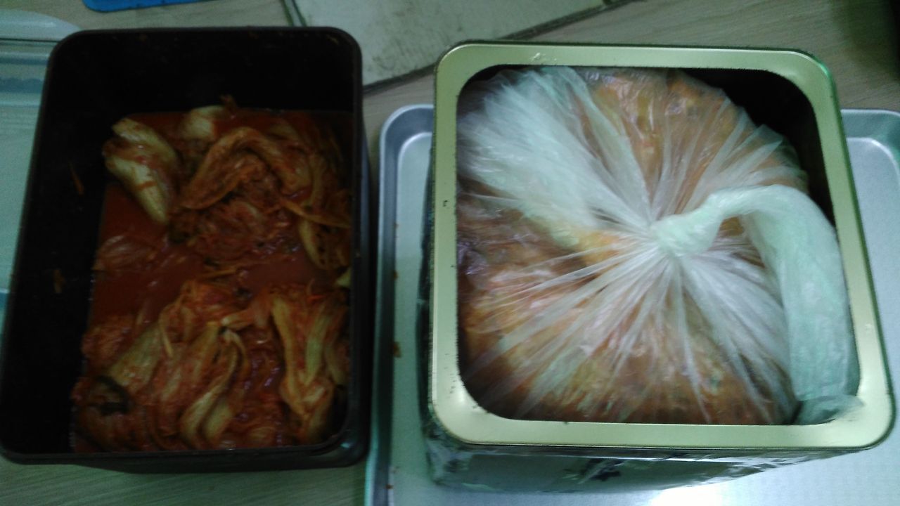 하루 이틀 지나면 김치가 익으면서 가스가 나오는데, 그 바람에 김치 담긴 비닐이 터지는 수가 있단다. 택배 회사에서 말하길 실제로 그런 일이 자주 벌어진다고.