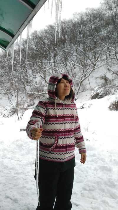 다시 마당. 낮에 아주 잠시 해가 났다고 처마 끝에 길쭉길쭉 고드름이 열렸다. 우와~ 저렇게 큰 고드름은 처음이야! 똑 따서 딱 한 입만 먹는다. 지붕 재료가 썩 좋은 게 아니어선. 나무 집이나 초가집이었음, 얼음과자처럼 아작아작 끝까지 맛나게 먹었을 텐데. 고드름 뚝 끊어지는 손맛이 무지 짜릿해서 가장 긴 놈으로 다시 뚝! 손에 쥐고 혼자 지팡이 놀이를 해본다. 손이 시려서 오래 붙잡진 못했지만 재미나다.