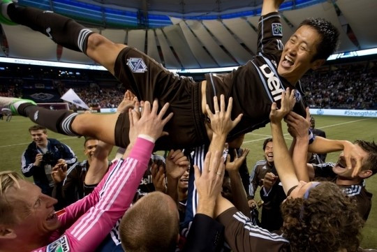 이영표 은퇴경기 후 헹가래