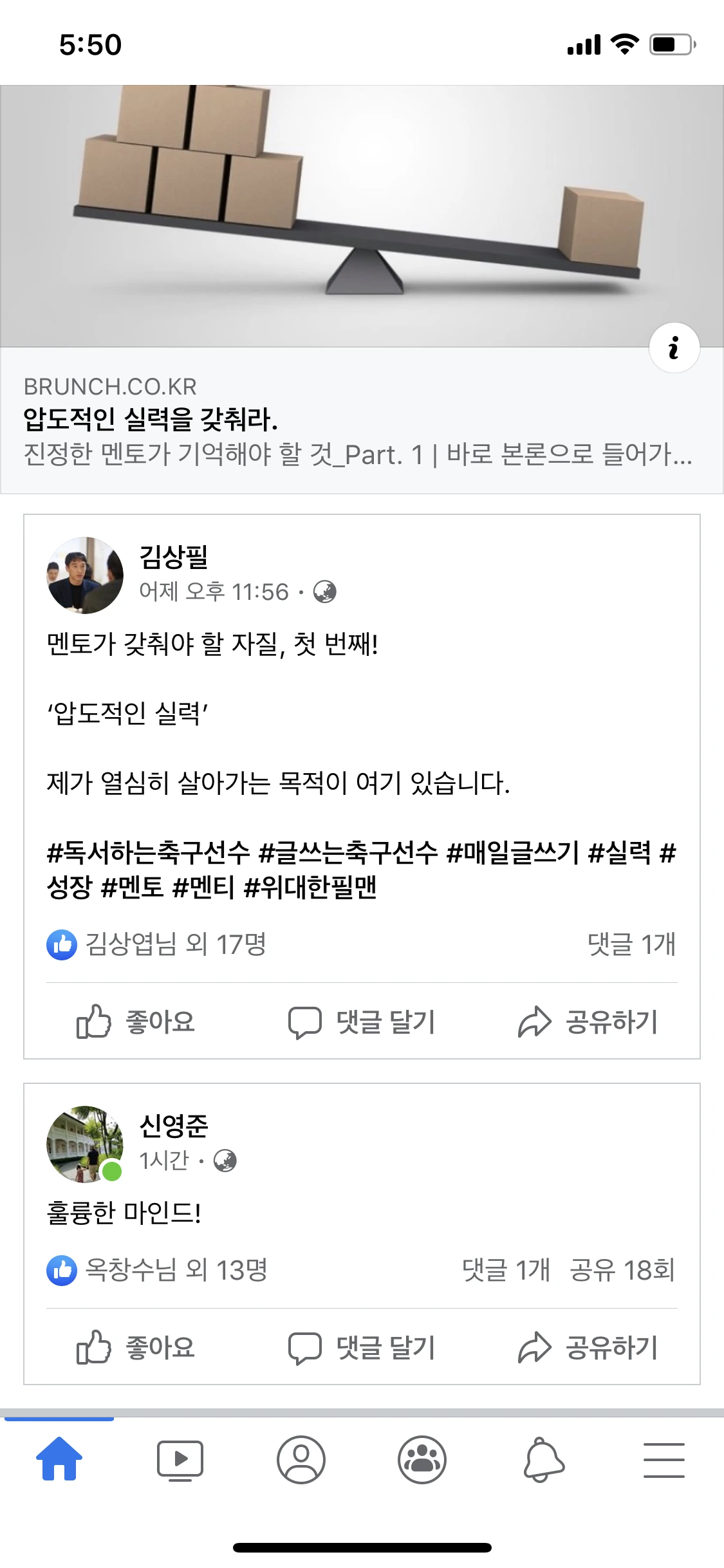 대박은 '아빠는 멀었다'라는 글이다. 포털 사이트 '다음' 메인에 공유되면서 블랙스완이 터지게 된다. 신박사님께서 자신의 페이스북에 공유해주신 '압도적인 실력'은 공유만 200개가 넘었고(조회수 1267명), 어떻게 바이럴이 되었는지 모르는 '편한 결혼 생활은 없다'와 '축구선수로 먹고 살기 어렵습니다.'는 각각 현재 시간 기준 6767명, 7126명이 되었다. 많은 사람들이 내 글을 봐주고, 신박사님께서 칭찬과 더불어 공유까지 해주시니 기쁘기가 그지없다. 기쁨과 동시에 배움도 있었다. 이 과정 속에서 복잡계를 조금이나마 이해할 수 있게 된 것이다.
