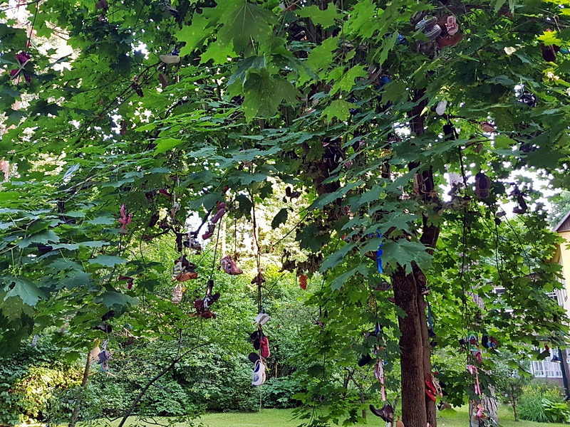 신기하게도 그 박물관 앞 나무에 어린이 신발이 가득 걸려 있었다.