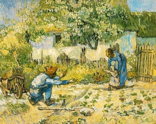 고흐가 세상을 떠나던 해 완성한 작품으로 밀레의 첫걸음- 테오가 보내준 흑백사진-을 모사한 그림입니다.