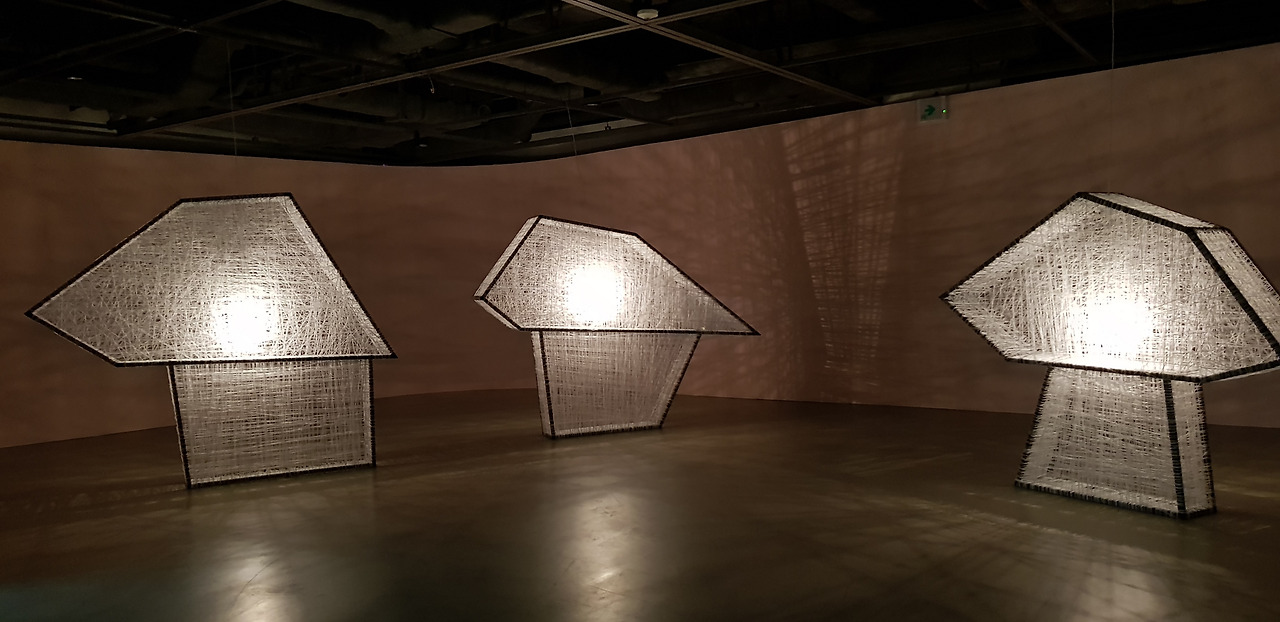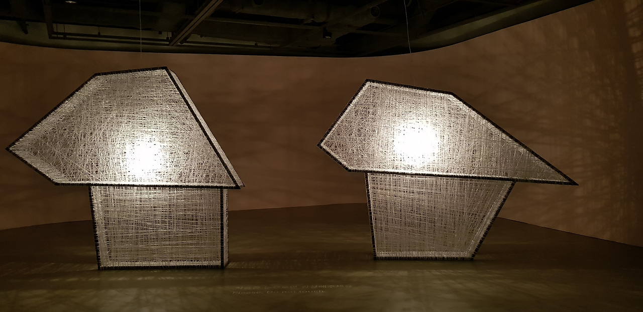 가령 세화미술관에는 실로 엮어진 집 세 채가 한 공간에 자리하고 있다.