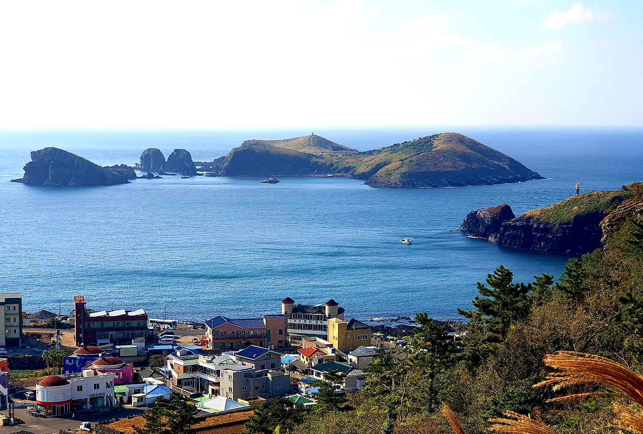 차귀도와 와도가 푸르른 바다에 더 짙푸른 모습으로 엎드려져 있는데 마치 그 모습이 먼 바다를 향해 절을 하는 듯 겸손해 보인다.