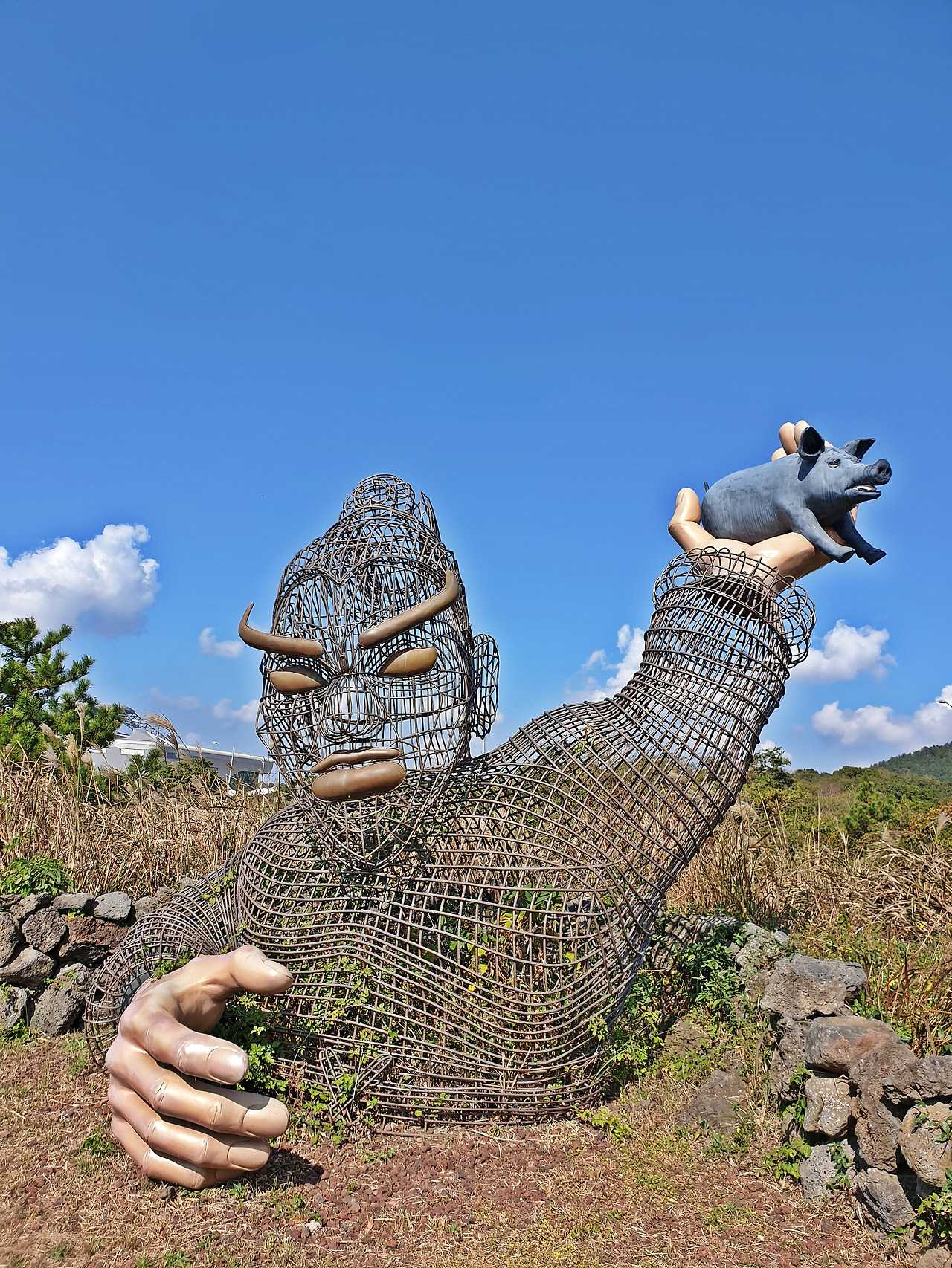 그곳에서 한 시간 반 쯤 걸었다. 제주도의 소박한 곳자왈에 길을 내고 이름답게 제주도에 전해져 내려오는 신화속 사람, 동물 설치물이 간간히 있었는데 재미있었다.