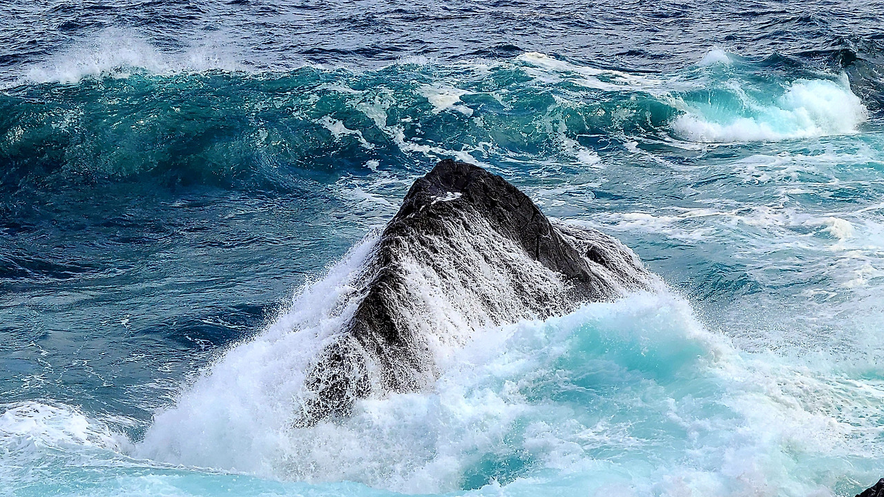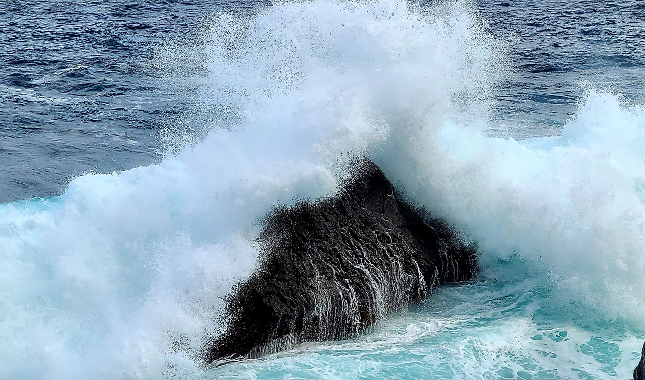 하얀 포말이 지닌 푸른 바다와의 대비,