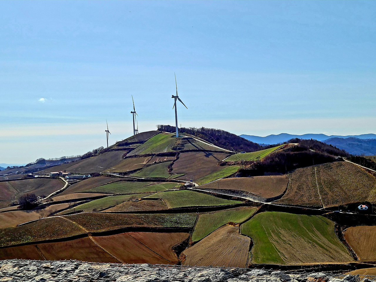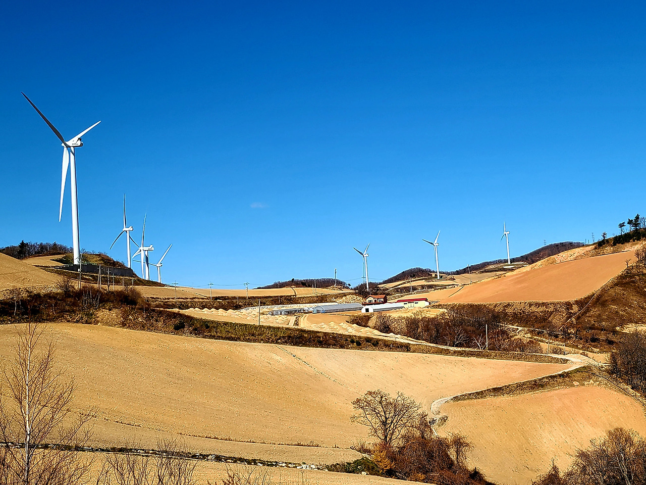 거대한 풍력 발전기들이 돌면서 내는 날카롭고 음산한 소리가