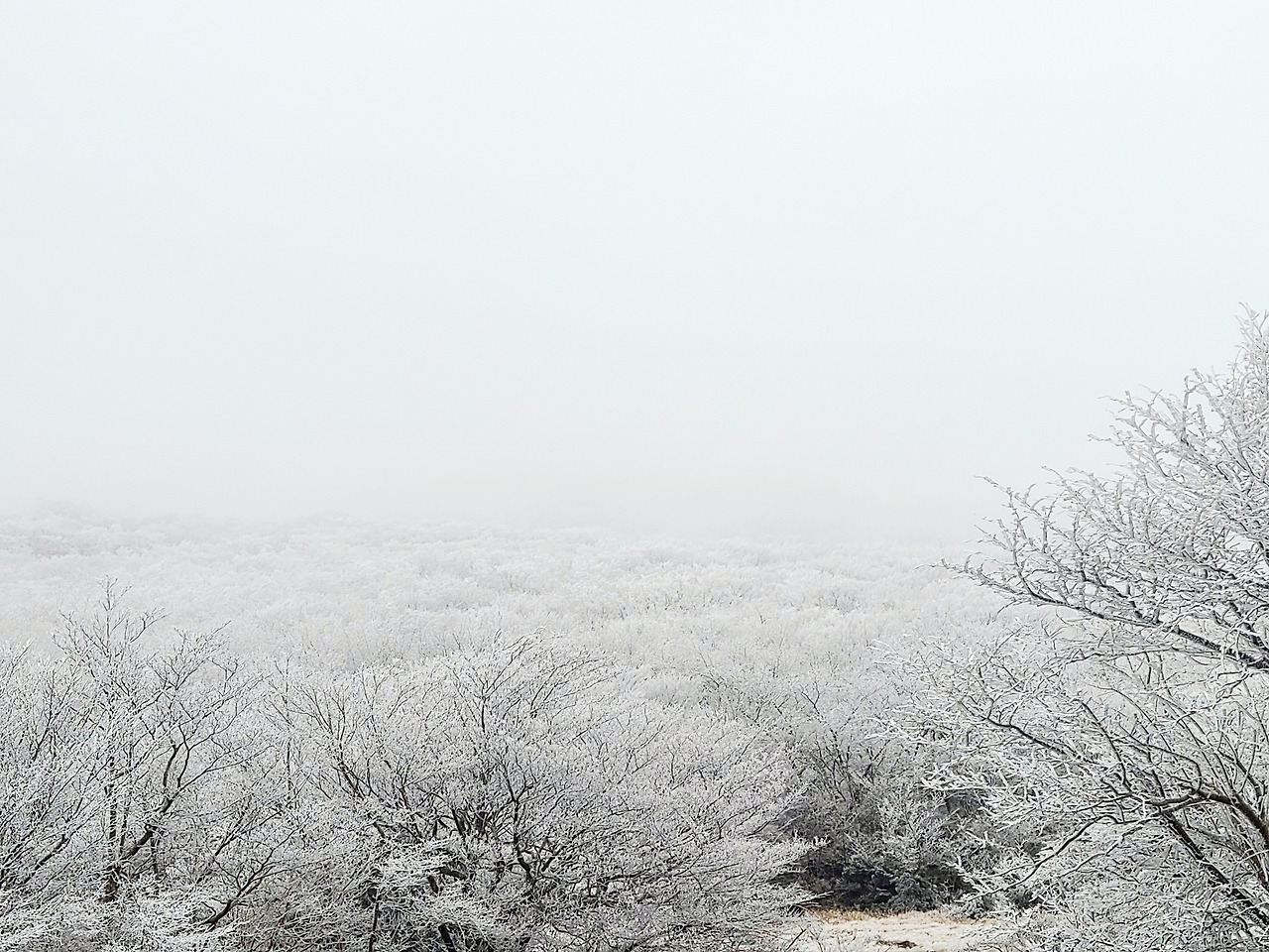1100고지 습지에 도착하니 어승생악도 한라산도 온통 하얗게 변해 있었습니다.