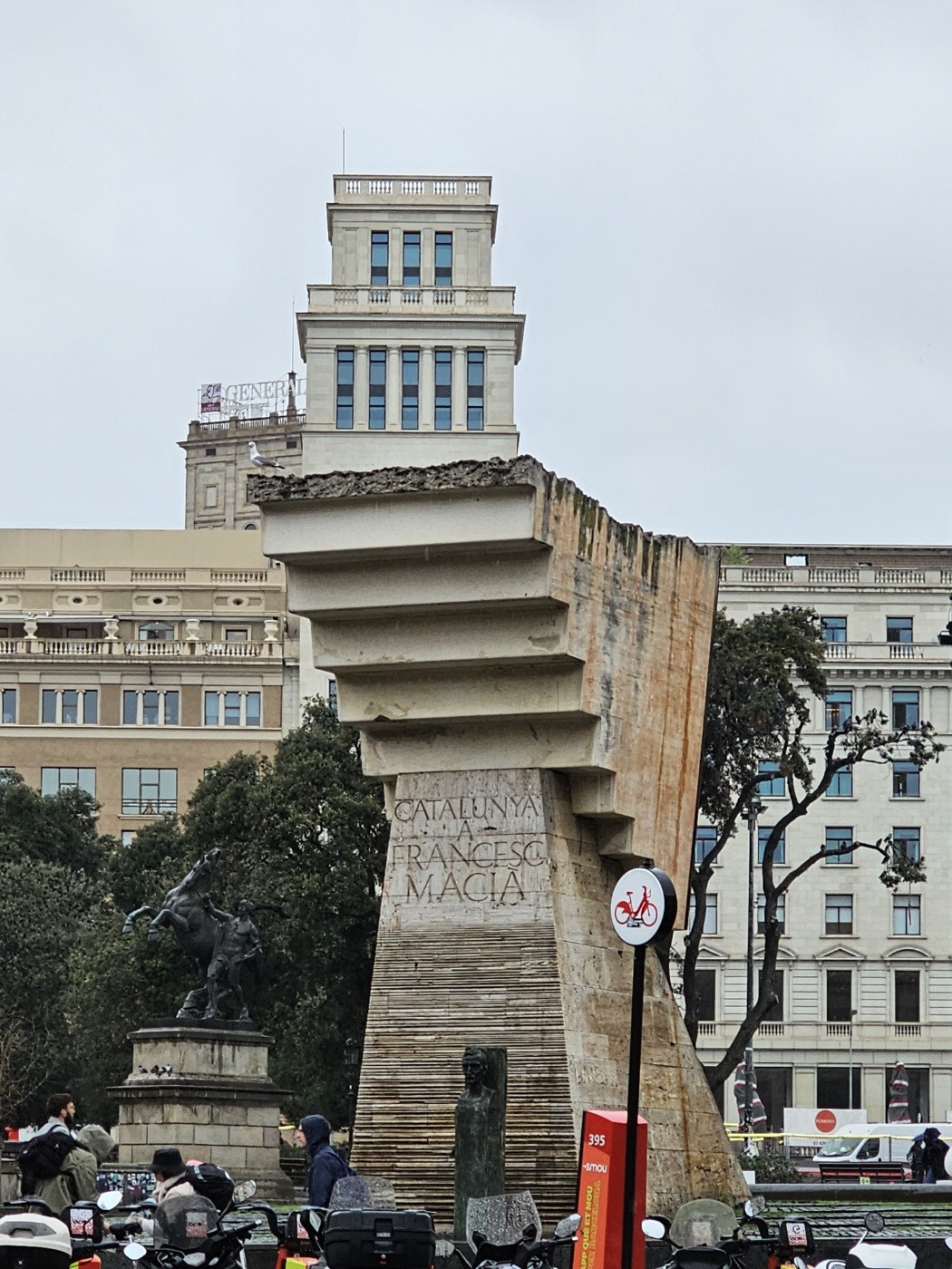 카탈루냐 광장의 기이한 조형물에는 CATALUNYA FRANCESC MACIA 라는 글자가 조각되어 있었다.