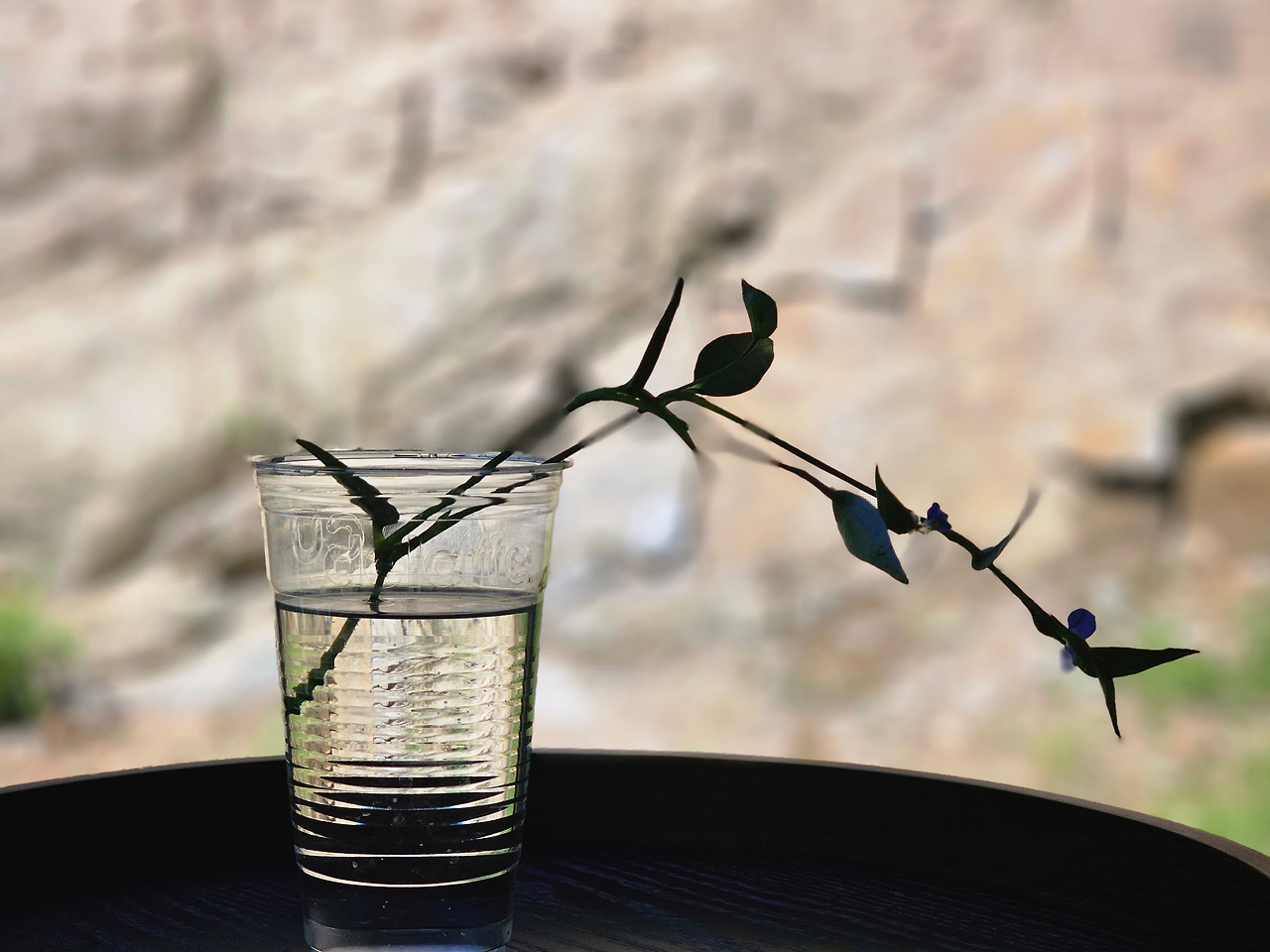 한 가지를 꺽어 커피를 마시고 난 투명 플라스틱 컵에 꽃았다.