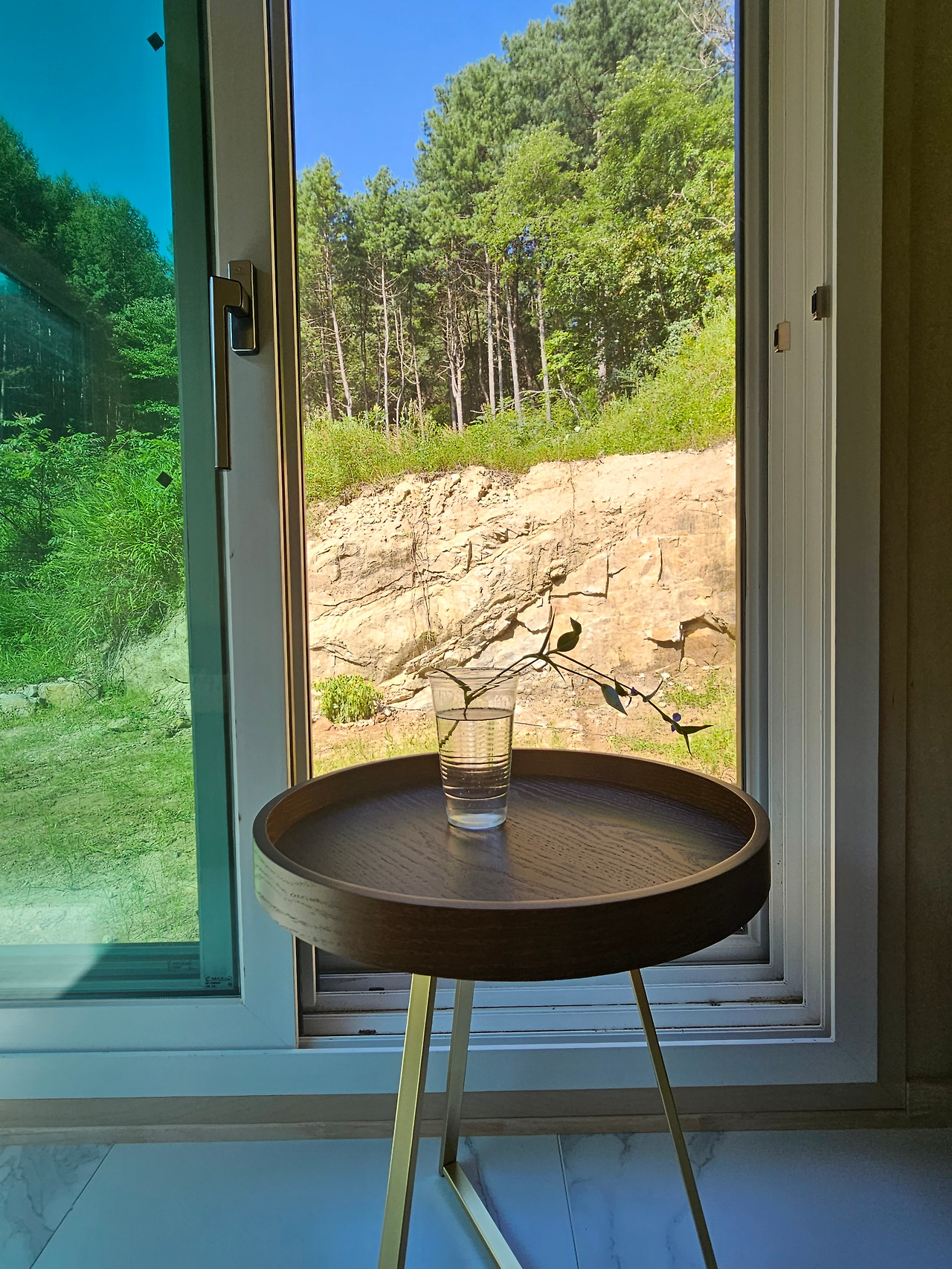 여름 더위속 서늘한 기운을 배경으로 살짝 초록과의 사이에 여백을 만들며