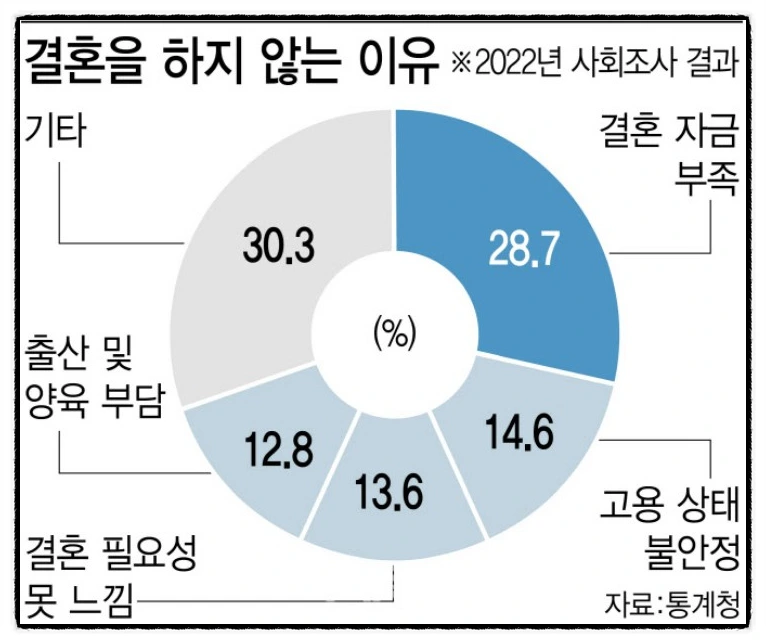 특히 MZ 세대는 생활비 부담이 크며, 경제적 불안정이 결혼 의지를 크게 떨어뜨리는 요인으로 작용하고 있습니다.