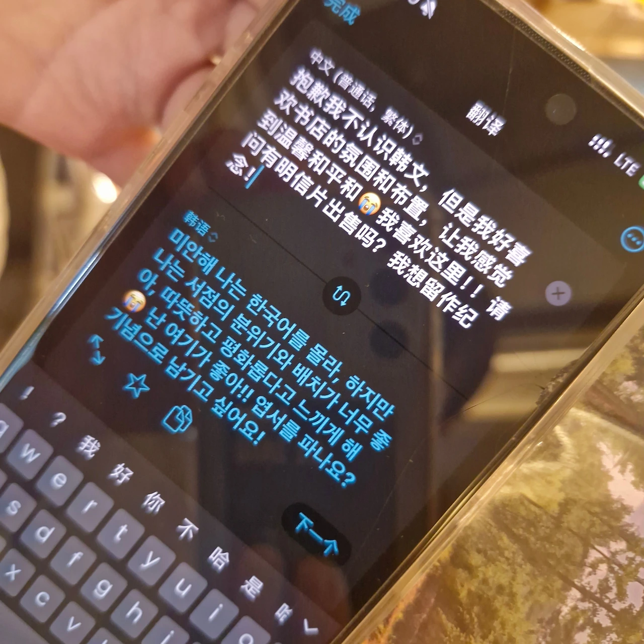 스탬프를 모으는 수첩에 책방 스탬프를 찍어주고, 씨앗연필도 선물하고, 책모양 스탬프에 "만나서 반가워요" 한글도 적어주었다. 합장을 하고 고개를 숙이고.. 초승달 같은 눈을 하고는 우린 마주 보고 웃었다.