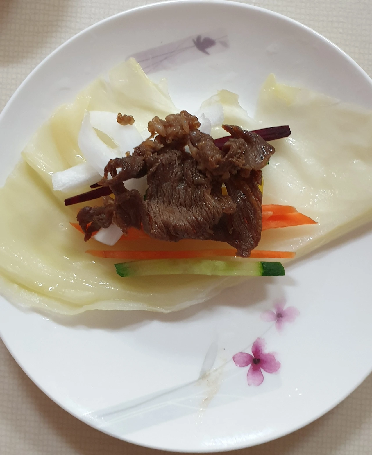월남쌈 라이스페이퍼를 뜨거운 물에 담가서 먹는 것도 좋지만, 양배추쌈으로 먹어보는 것은 어떨까 싶었다.