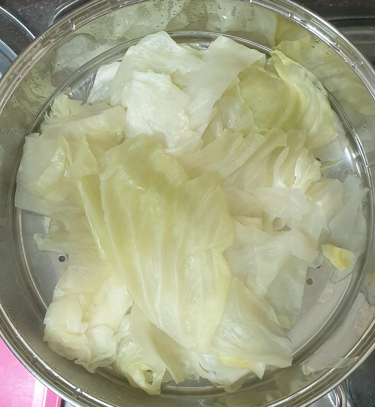 여러 레시피들을 보니 양배추 찌는 시간은 8분-10분정도로 나와 있다