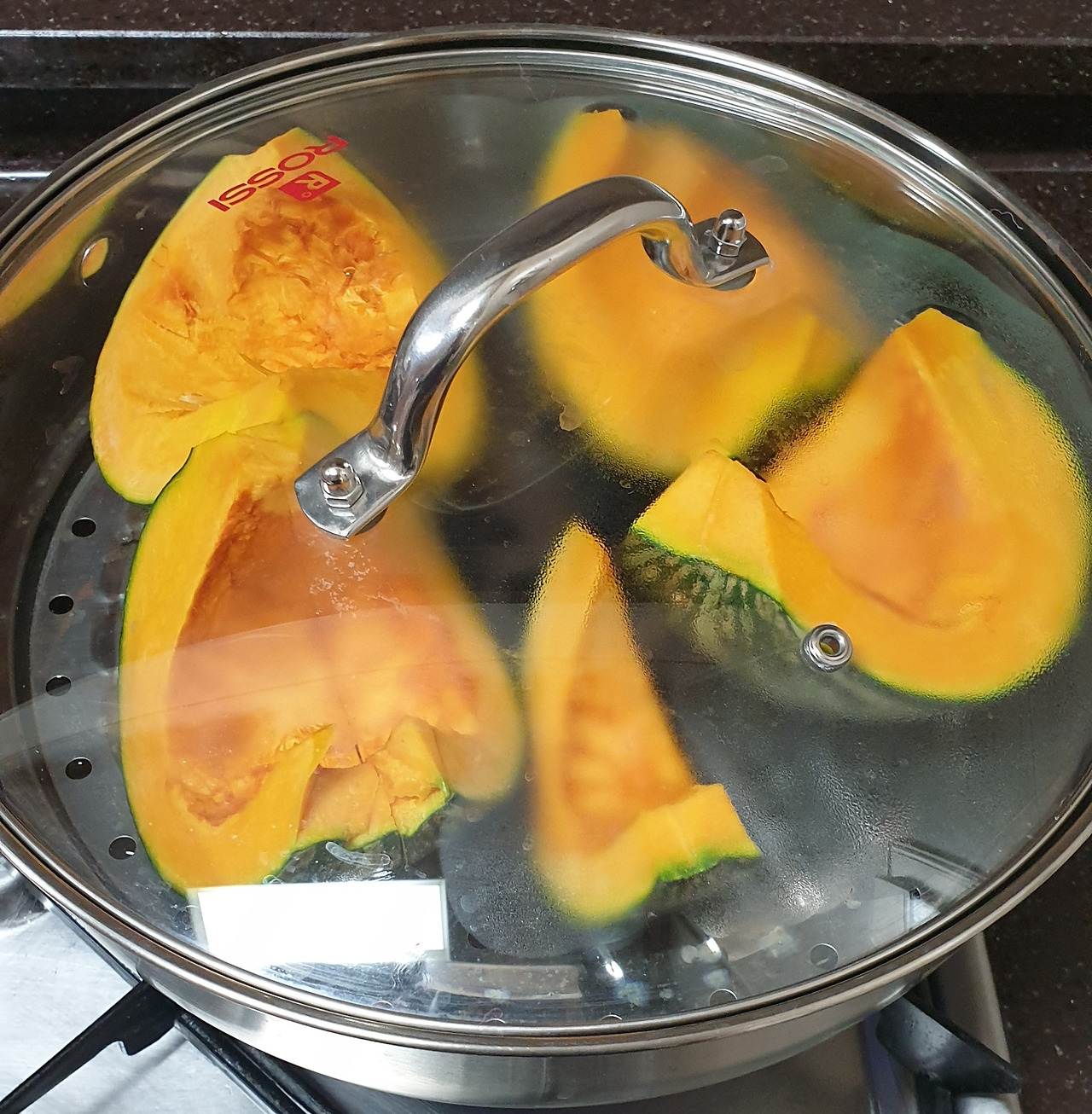 1주일 전 마트에서 작은 단호박이 눈에 들어왔다. 요리를 시작하니 자꾸만 눈에 뭐가 들어온다. 이 재료는 뭐지? 이런 식으로 한참을 들여다 보기도 한다. 단호박을 보면서, 단호박찜을 해볼까란 생각이 들었다. 그래~ 단호박찜, 얼씨구나 좋다. 이것도 뭐 찜기에 넣고 고구마 찌듯 찌면 되는 것 아닌가? 아직도 난이도 쉬운 요리를 통해 요리는 해 볼 만하다는 자신감이 필요하다.