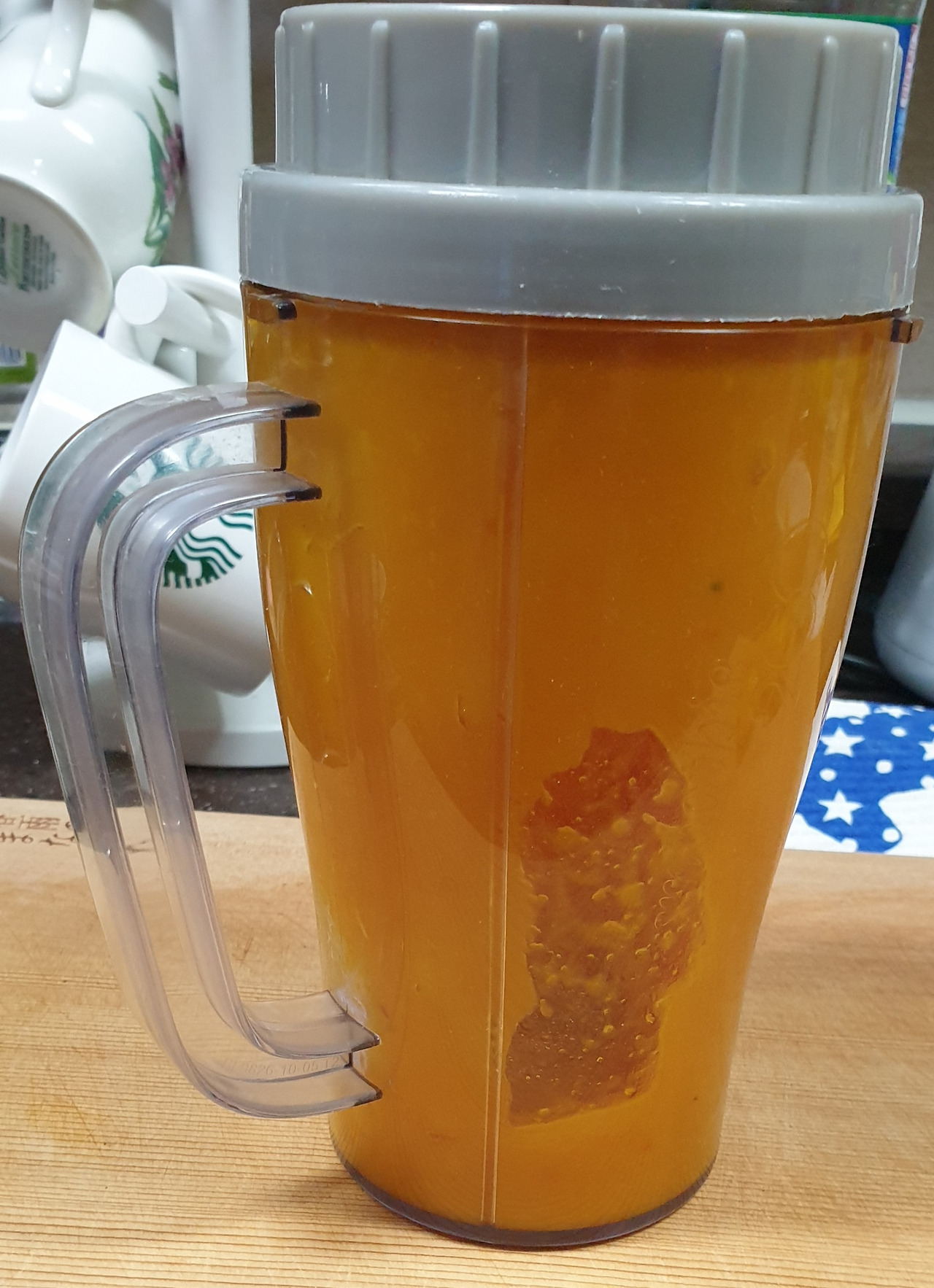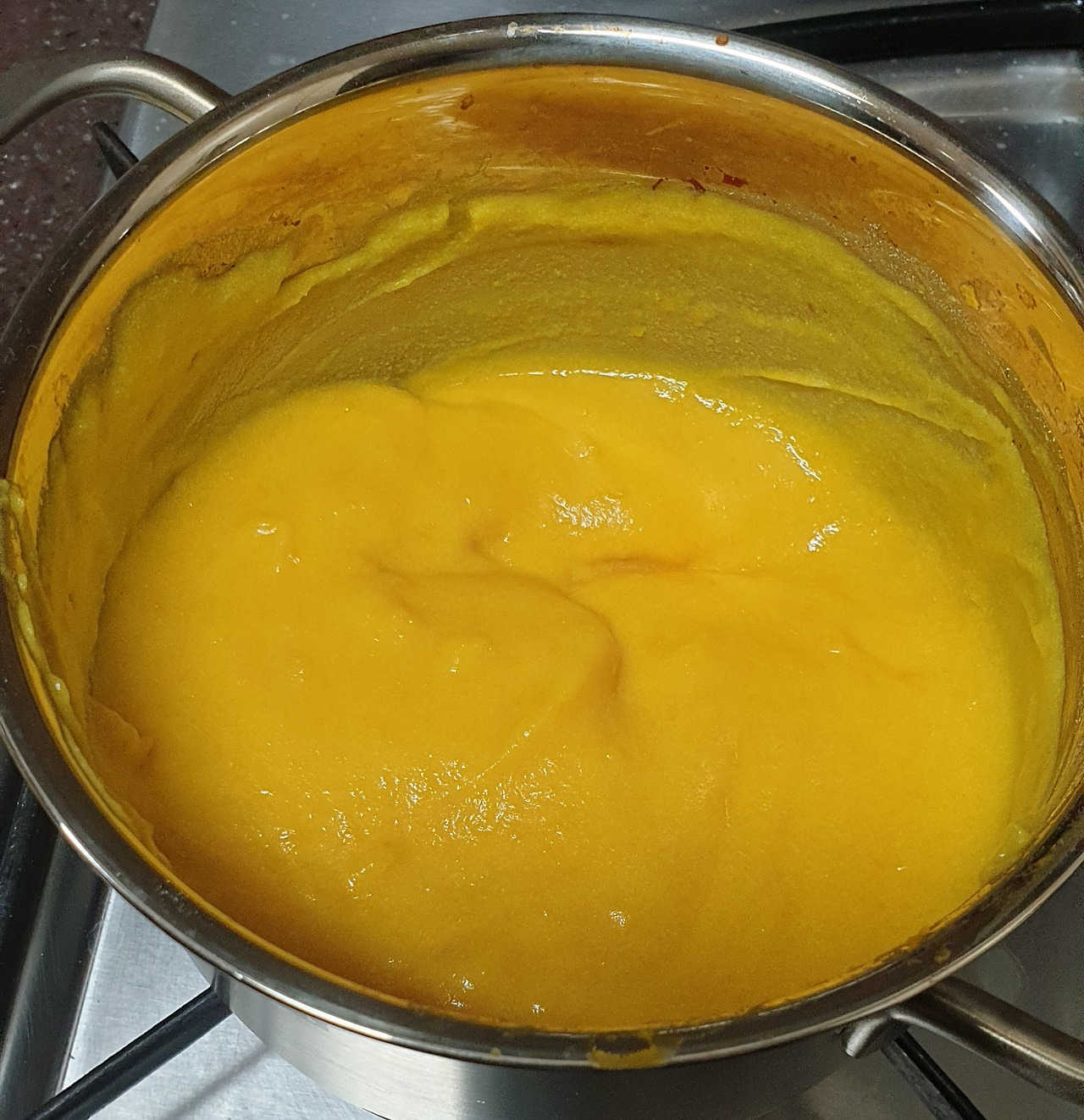 다 익으면, 단호박을 긁어서 믹서기에 넣은 후 물을 조금 넣어 간다.단호박반개 기준으로