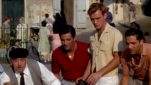 이 영화는 1950년대 배경을 담고 있다. 잠시 발을 들여보자면 1939년부터 1945년까지 2차 세계대전이 있었고,(우리나라는 1945년 8월 15일에 해방을 하였다) 전쟁 중에는 각 나라에 노동력 부족과 물자 부족으로 의복에 소재와 디자인이 제한되어 패션이 *정체되었는데 그러다 보니 전시 복을 개조하여 기성복으로 탄생시키며 실용성이 좋은 밀리터리 룩이 유행하게 되었다. 전쟁 끝난 후 소비시대로 접어들고, 젊은이들은 패션에 관심을 많이 가지며 그들의 부모 세대와는 다른 형태의 복식의 스타일이 활성화되었다. 소비자들은 딱딱하고 남성적인 밀리터리 룩에서 벗어나 부드럽고 여성적인 패션에 대한 향수를 가졌으며, 1947년 크리스티안 디올이 뉴룩(New Look)을 발표하며 대성공을 이루었고, 남성복에선 뉴룩을 상응하는 대담함을 선보인 *볼드 룩(Bold Look) 스타일이 있었다. 기성복 산업으로 대량생산이 용이해지며 남성 의복에 영향을 끼친 건 캐주얼의 도입이었고, 항상 입던 양복의 필요성은 떨어지고 인과적인 스포츠 복장으로 대체되었다. 세퍼레이트 재킷, 니트 티셔츠, 오픈 카라 드레스 셔츠, 버뮤다 쇼츠, 슬립 온 로퍼는 남성의 드레스 코드가 되었고 이런 아이템들을 영화 리플리에서는 여실 없이 보여주고 있다.