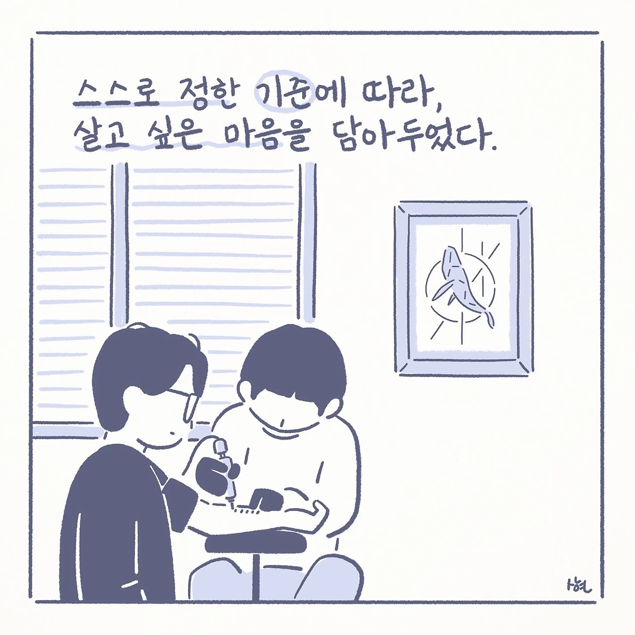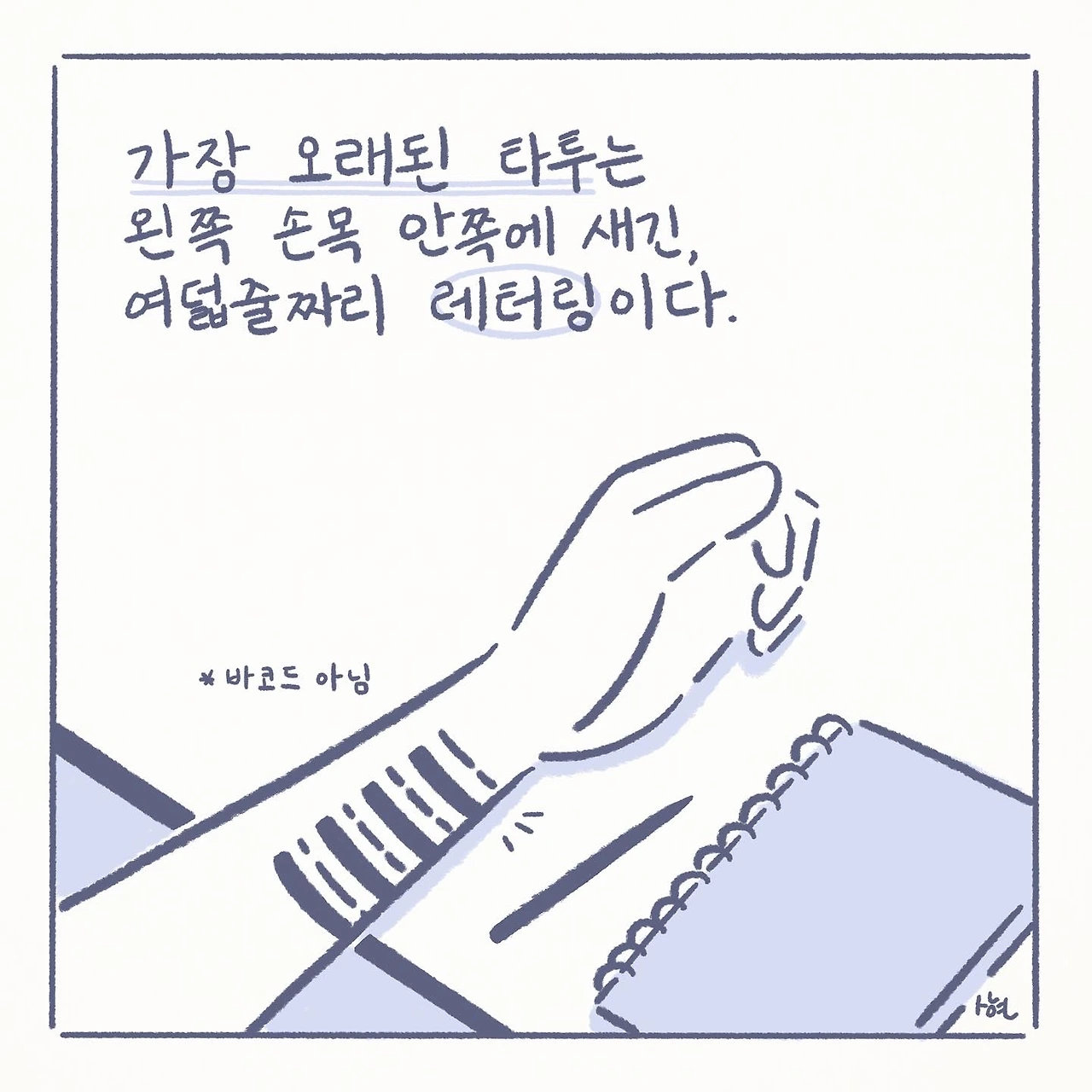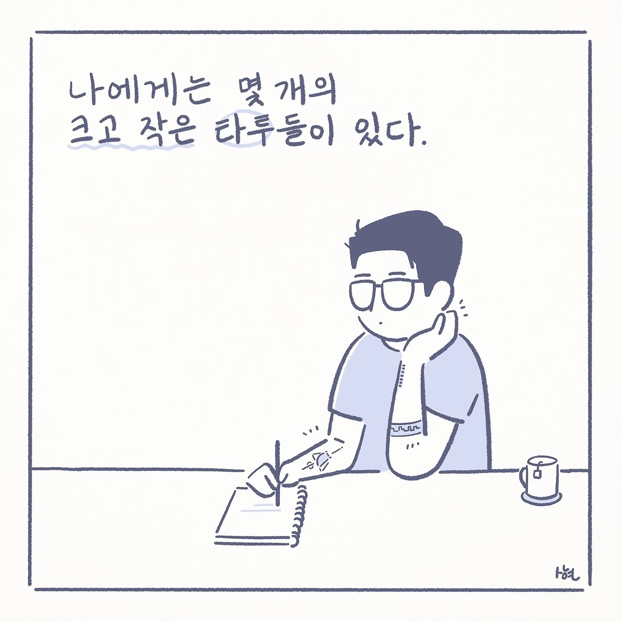타투를 할 때, 타투 자체에 큰 의미를 부여하는 편은 아니다. 단지 영원한 것이 가까운 곳에 존재한다는 것만으로도, 안도감을 주기도 한다.